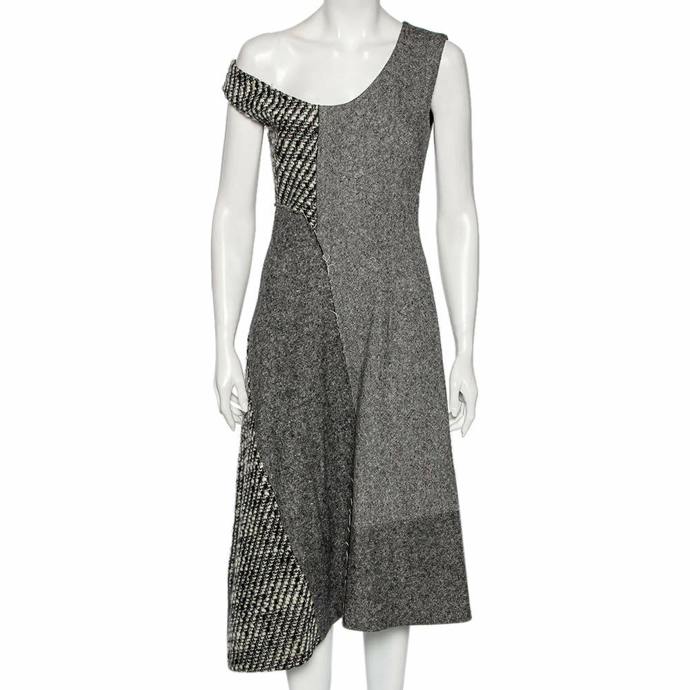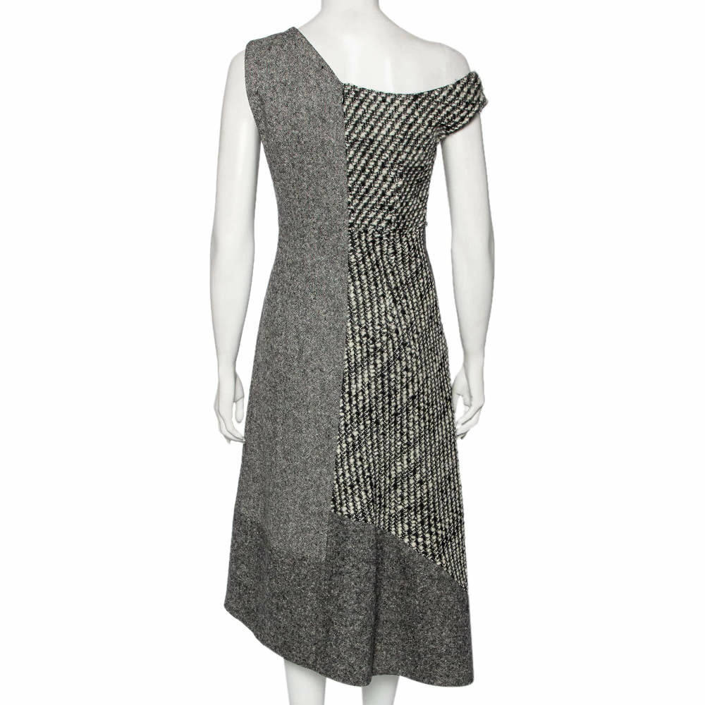 From the House of Stella McCartney, this midi dress is beautifully tailored to offer poise and panache. It is made from monochrome patchwork wool knit and features an asymmetric neckline. It has a zip-type fastening. Wear this dress and look nothing but lovely!