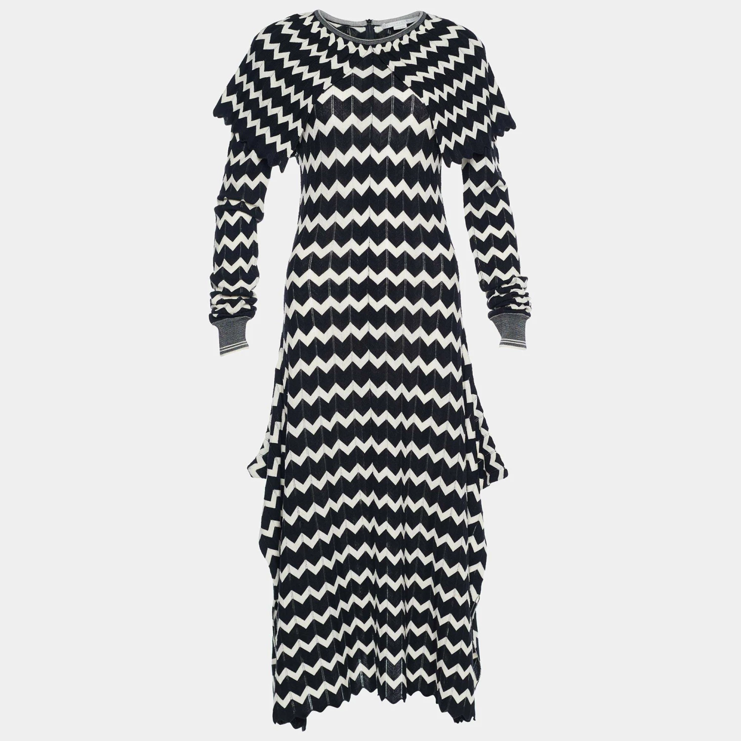 Step out in this Stella McCartney dress and have everyone go ga-ga over your outfit. This monochrome creation is easy to style, making it a staple party piece to incorporate into your wardrobe. Made from wool, it has a draped silhouette and is finished with a pattern all over and long sleeves.