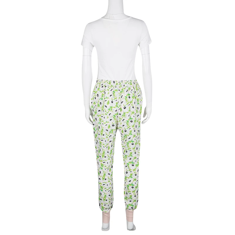 Slip into this causal pair of jogging pants designed by Stella McCartney flaunting your great fashion sense. The soft elastic waistband of this ankle length trouser gives a great comfort along with the designer look. The colourful floral print on this cotton pants provides serene look alongside facilitated with 2 external pockets.