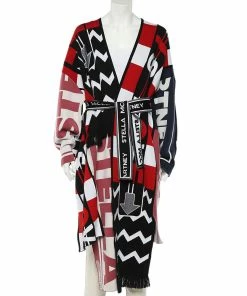 Asymmetric cuts, fringes, patches, patterns, and a mix of hues define this Stella McCartney oversized shrug. The creation is carefully made of high-quality wool and accompanied by a belt.