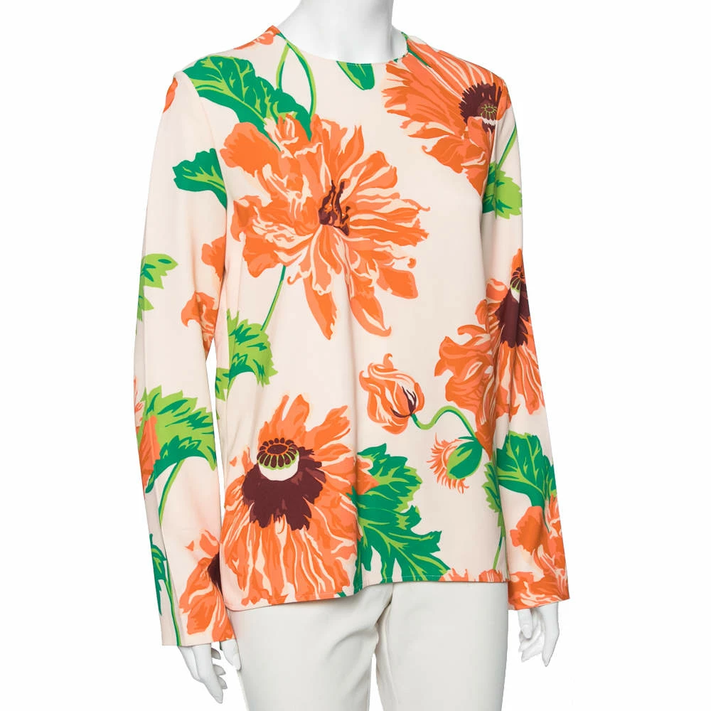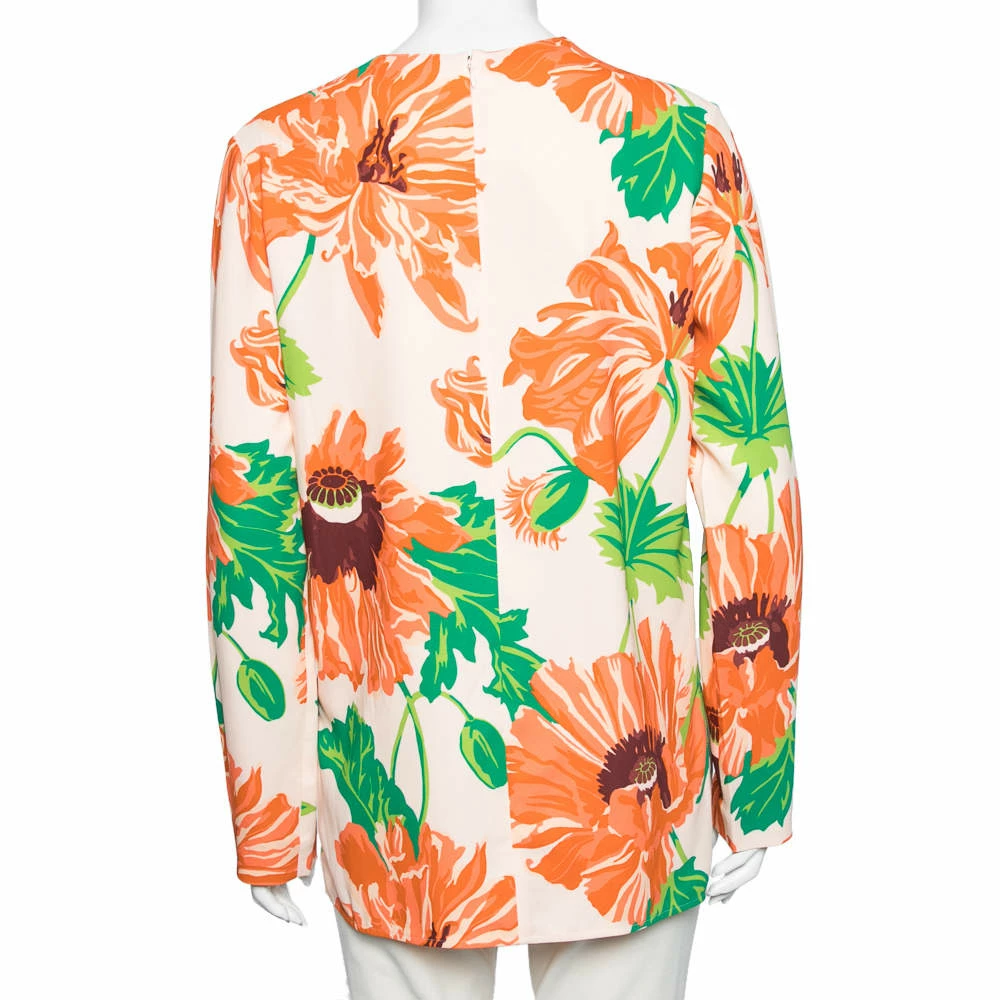 Your style will look appealing and admirable as you wear this lovely top from the House of Stella McCartney! It is stitched using multicolored floral-printed crepe fabric. It showcases long sleeves and a zip-type closure.