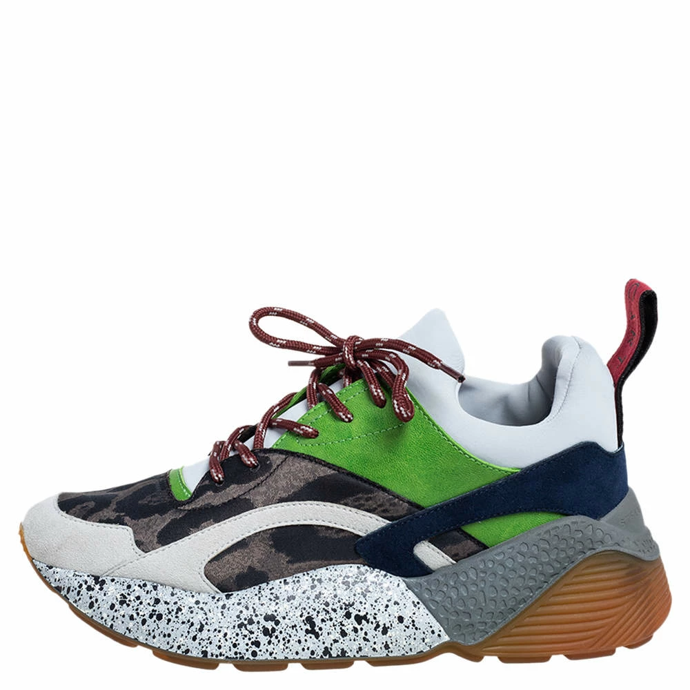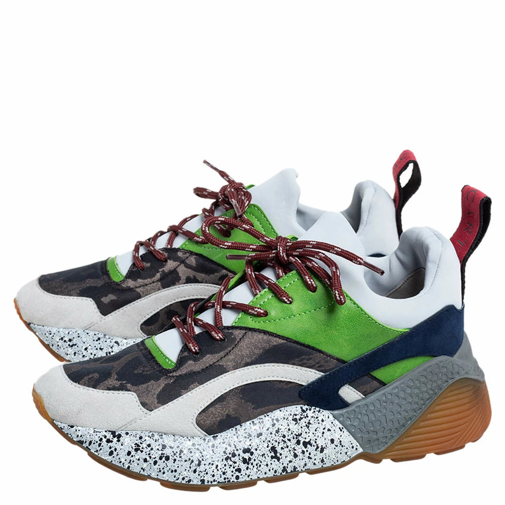 Stay in comfort with these sneakers from Stella McCartney. Crafted with a combination of faux suede, faux leather, and fabric, this pair has textured midsoles along with lace-up closure on the uppers. Comfortable faux leather lining and tough rubber soles complete these Eclypse sneakers.