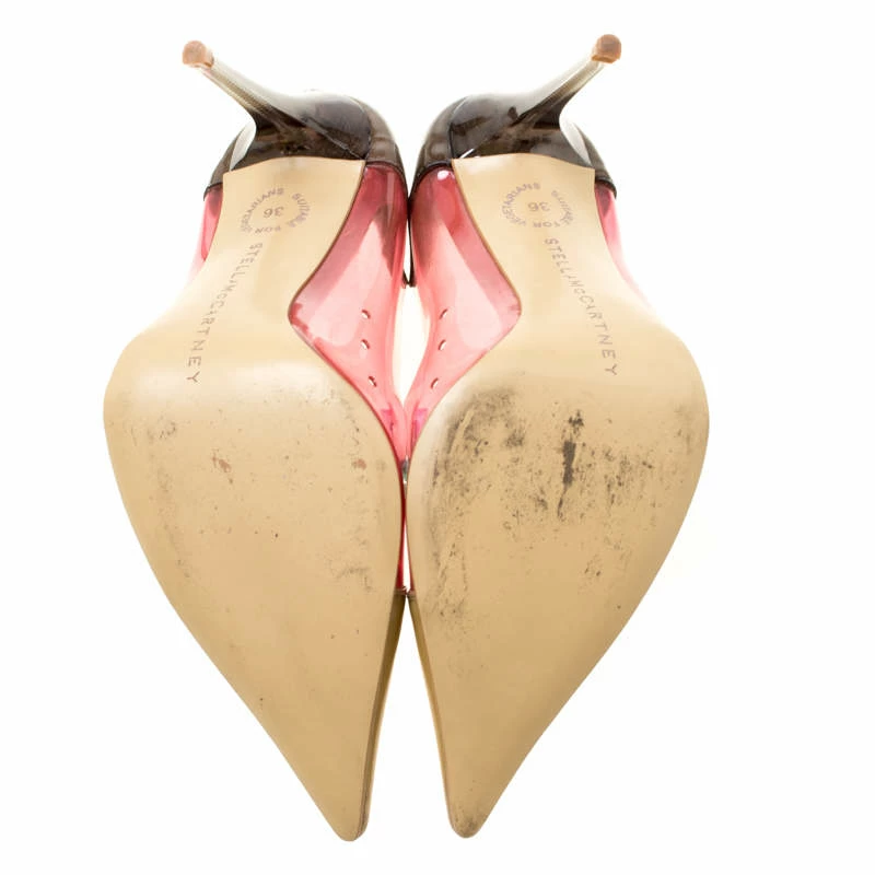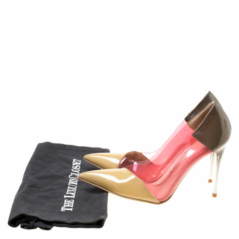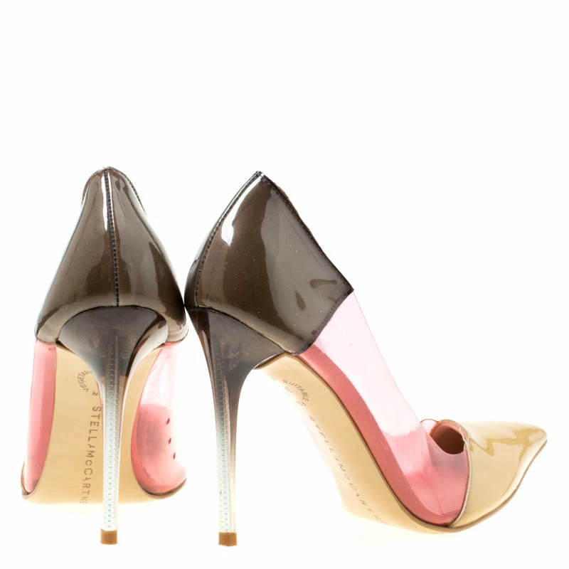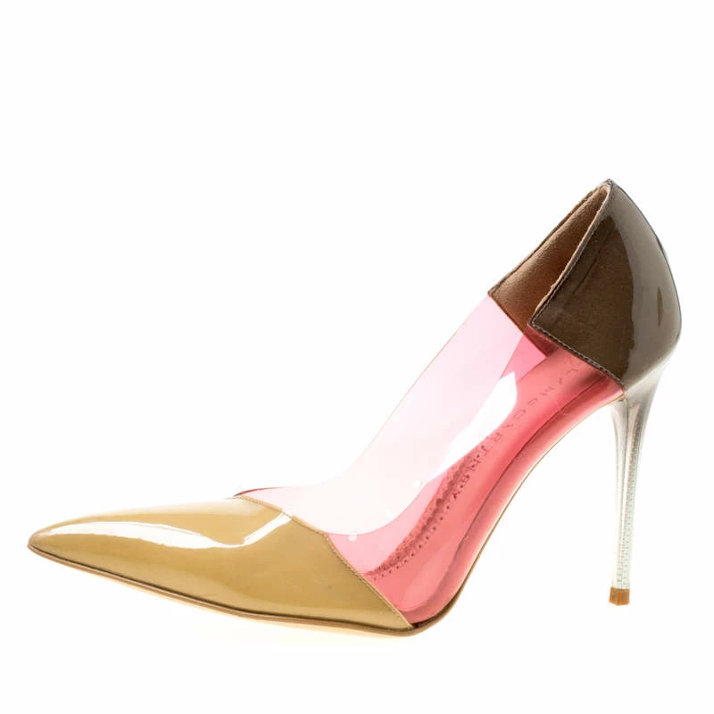 The trendy, stylish look is possible in this pair of faux leather and PVC pumps. They feature pointed toes and 9.5 cm heels with an ombre touch. Wear minimalist jewelry to let your great pair of multicolor pumps grab all the attention.
