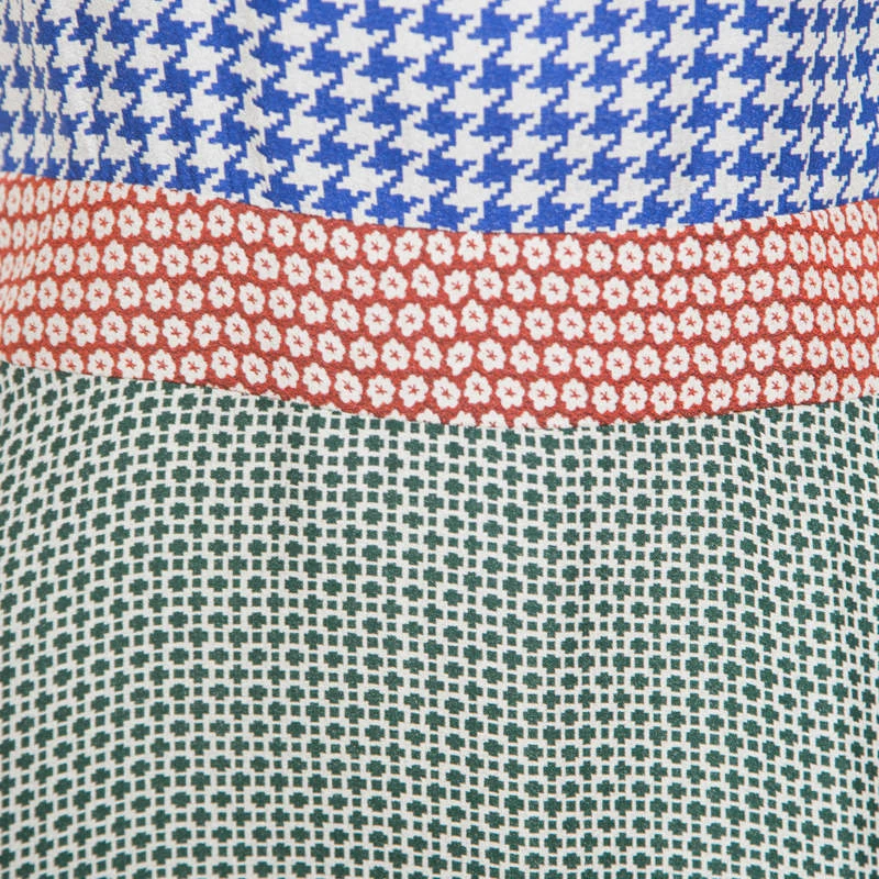 Cut to a comfy structure with short sleeves and knee-length, this Stella McCartney dress is an excellent choice for casual dos. It features a fit and flare-like silhouette and is adorned with multicolured prints all over. It is complete with zip fastenings. Wear this pretty dress with complementing wedge heels.