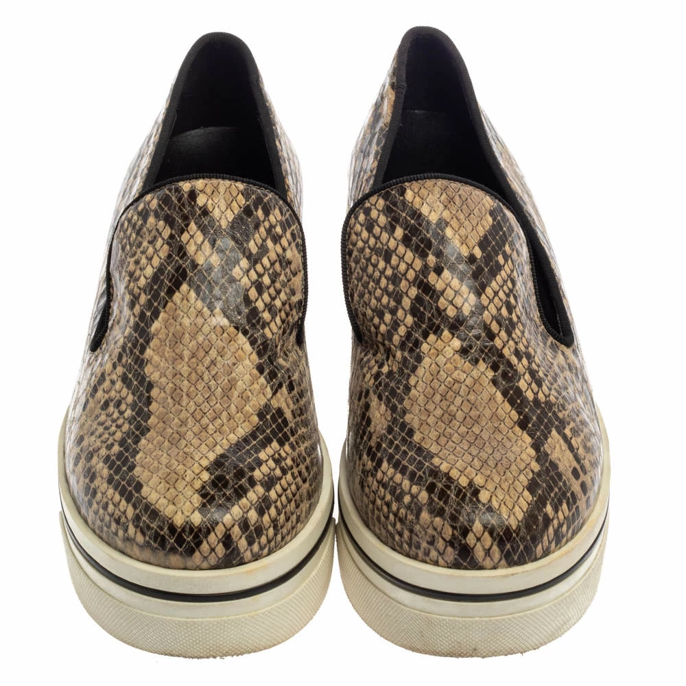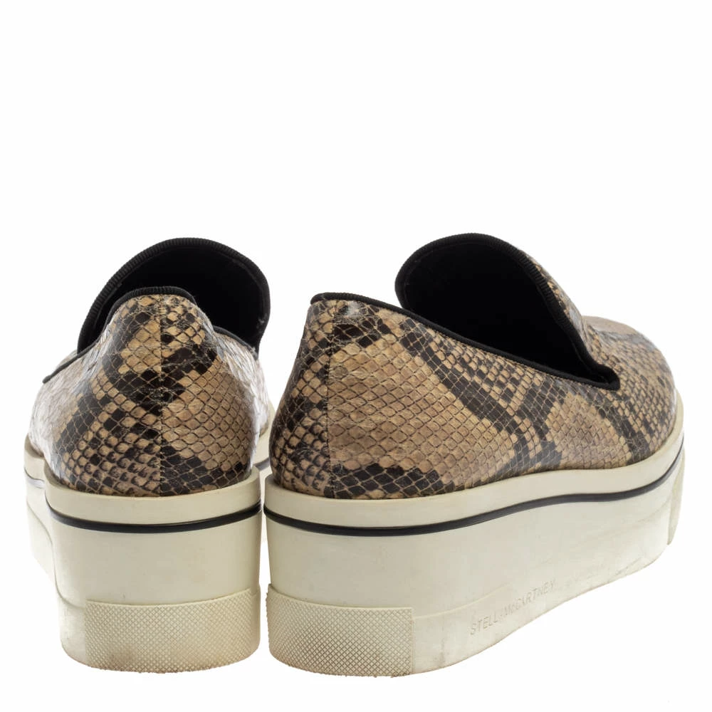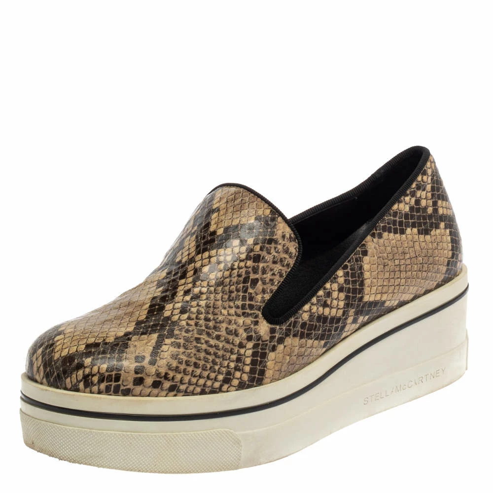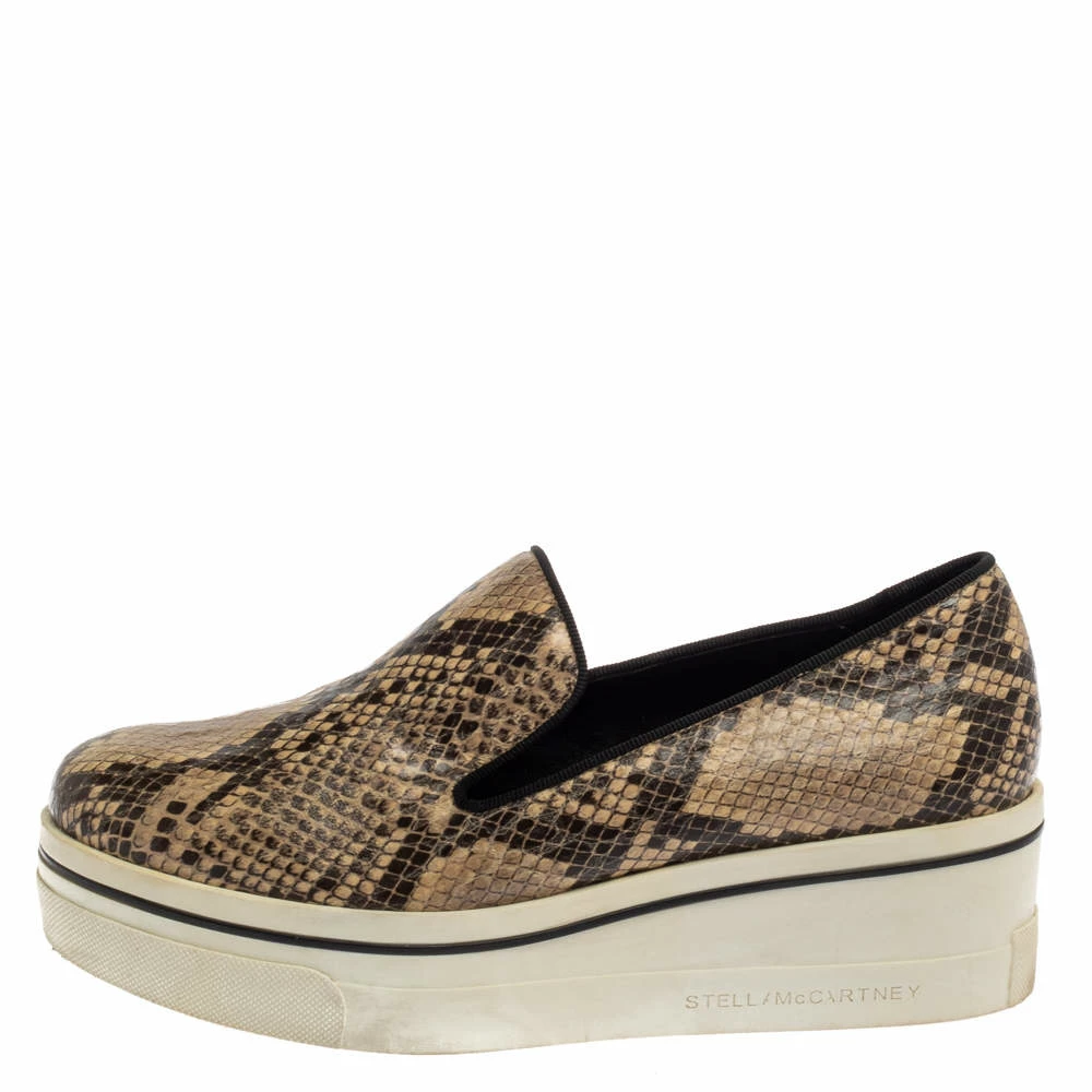 Make an amazing style statement in these slip-on sneakers from Stella McCartney. They have been crafted from python-embossed leather and styled with round toes. They come equipped with comfortable leather-lined insoles and thick rubber platforms. Grab them right away!