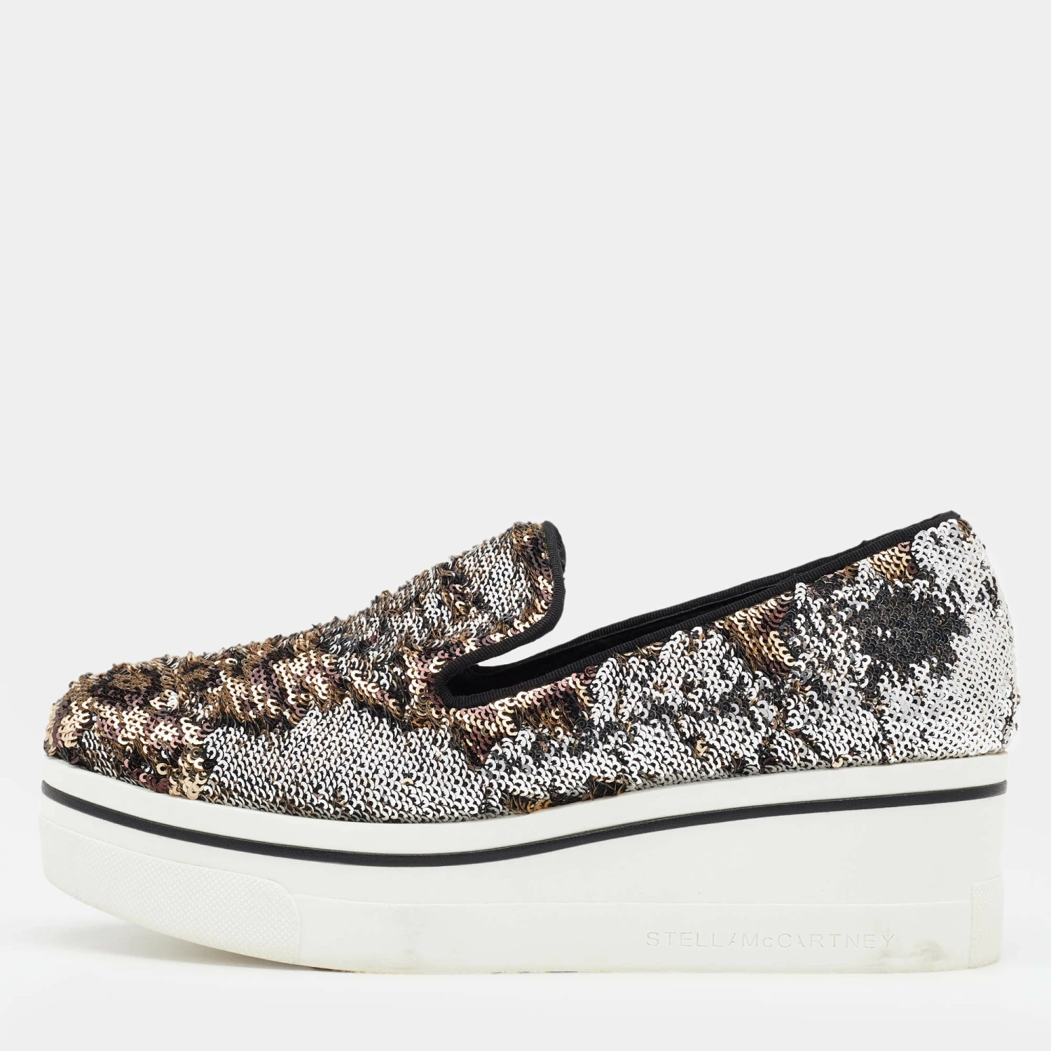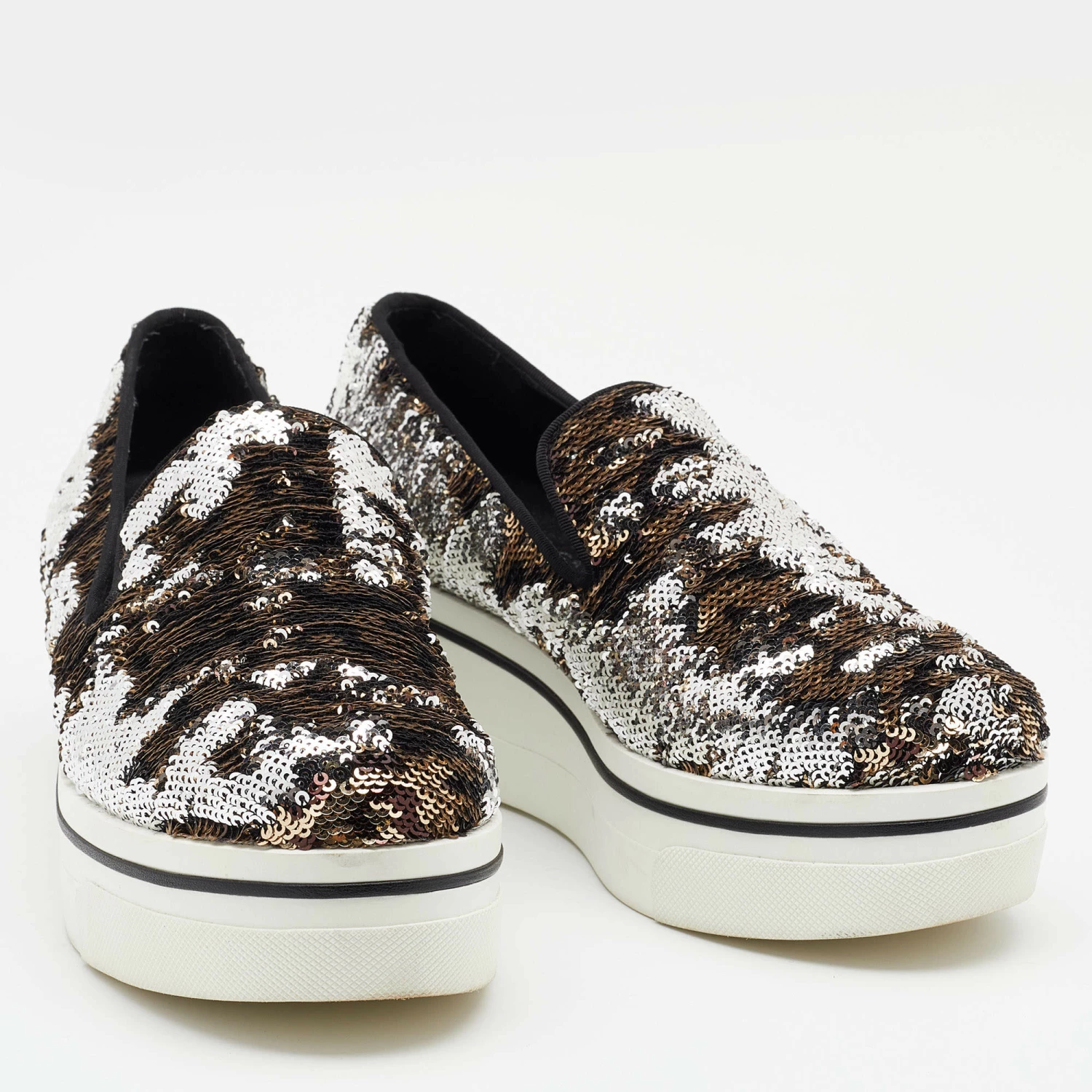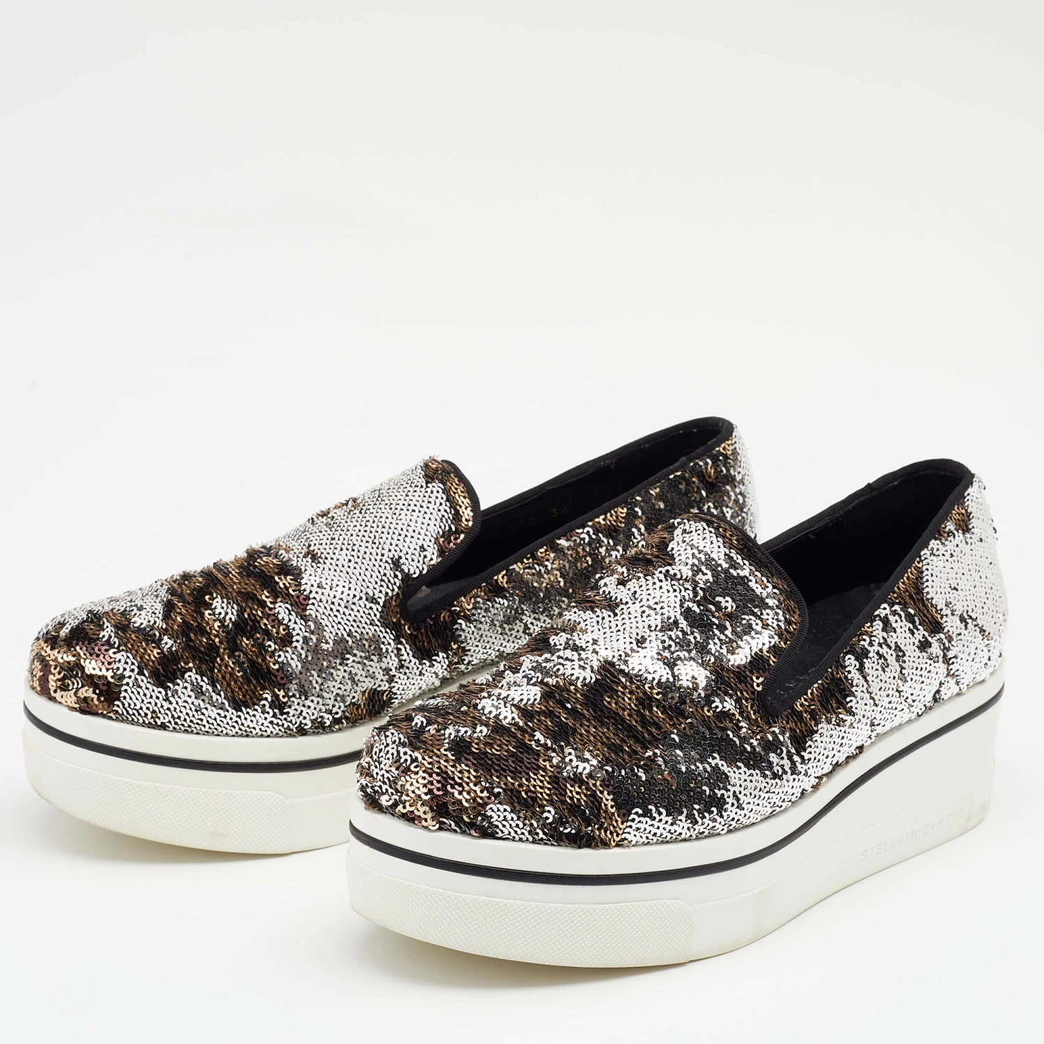 These Binx sneakers from Stella McCartney are effortlessly chic and stylish. The sneakers have been crafted from sequins and styled with round toes. They come equipped with comfortable faux leather insoles and thick rubber platforms.