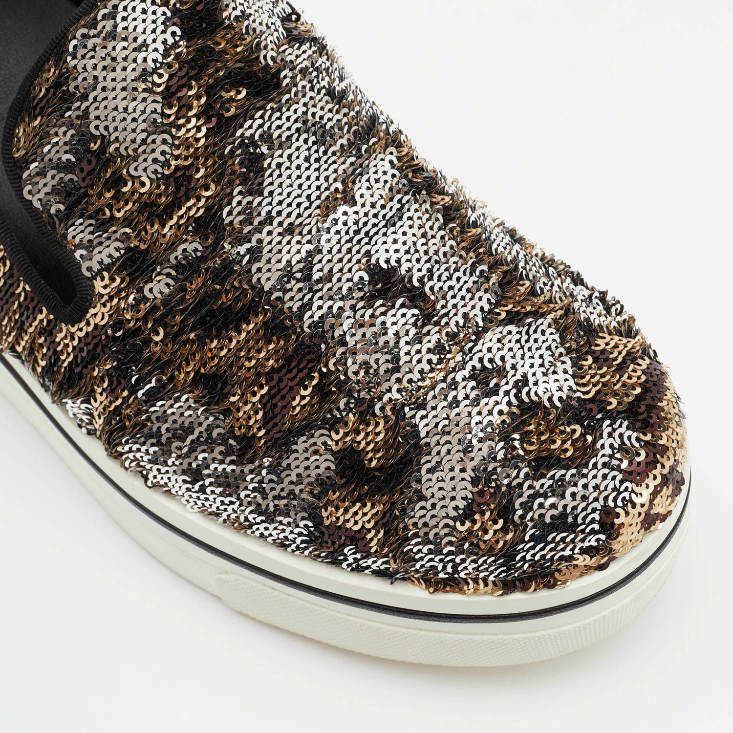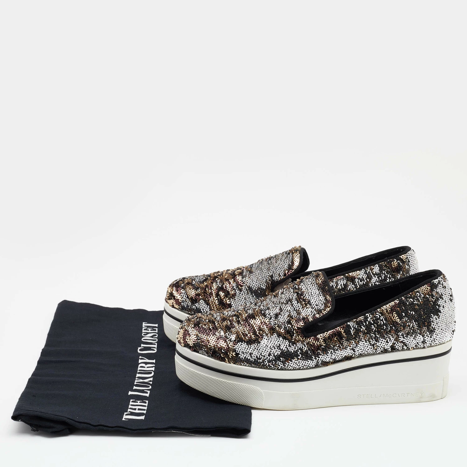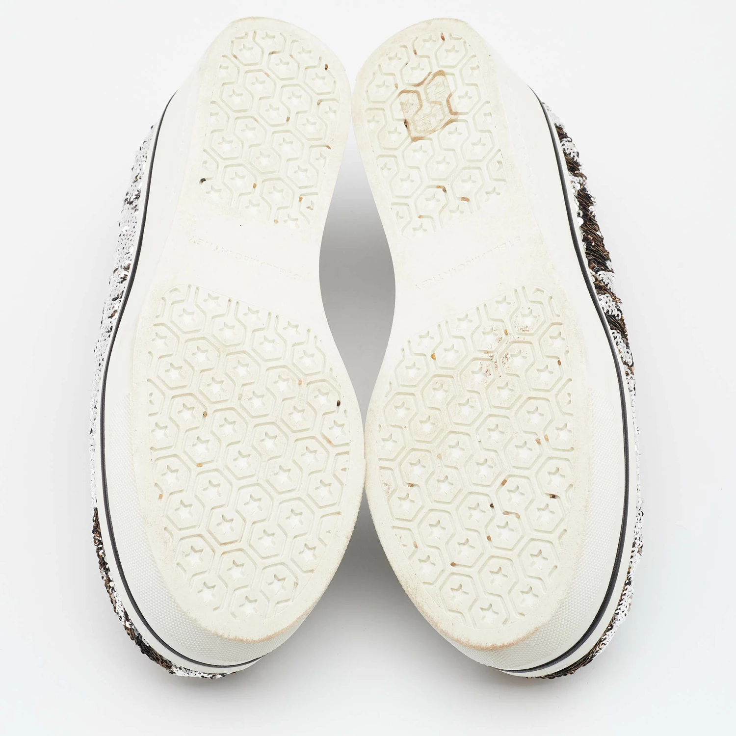These Binx sneakers from Stella McCartney are effortlessly chic and stylish. The sneakers have been crafted from sequins and styled with round toes. They come equipped with comfortable faux leather insoles and thick rubber platforms.