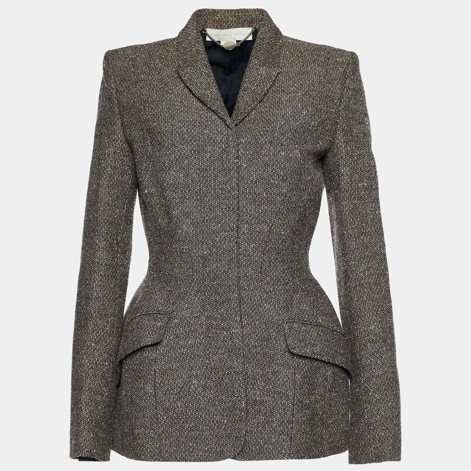 A coat as functional, classy, and stylish as this one is difficult to miss. Stella McCartney uses multicolored tweed fabric to tailor this coat. It is further enhanced with a button-front feature and long sleeves. To give more practicality, three pockets are added. Invest in this fashionable creation today!
