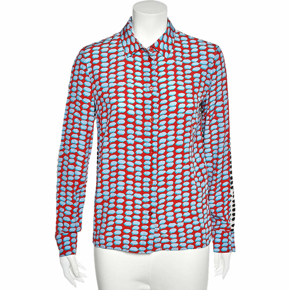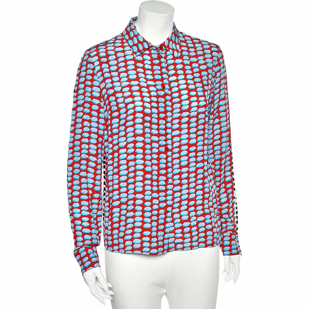Add a pop of color to your appearance by wearing this shirt from Stella McCartney. It has been stitched using multicolored printed silk and comes with a button-front feature. Chic and comfortable, this shirt is a great pick for casual outings.