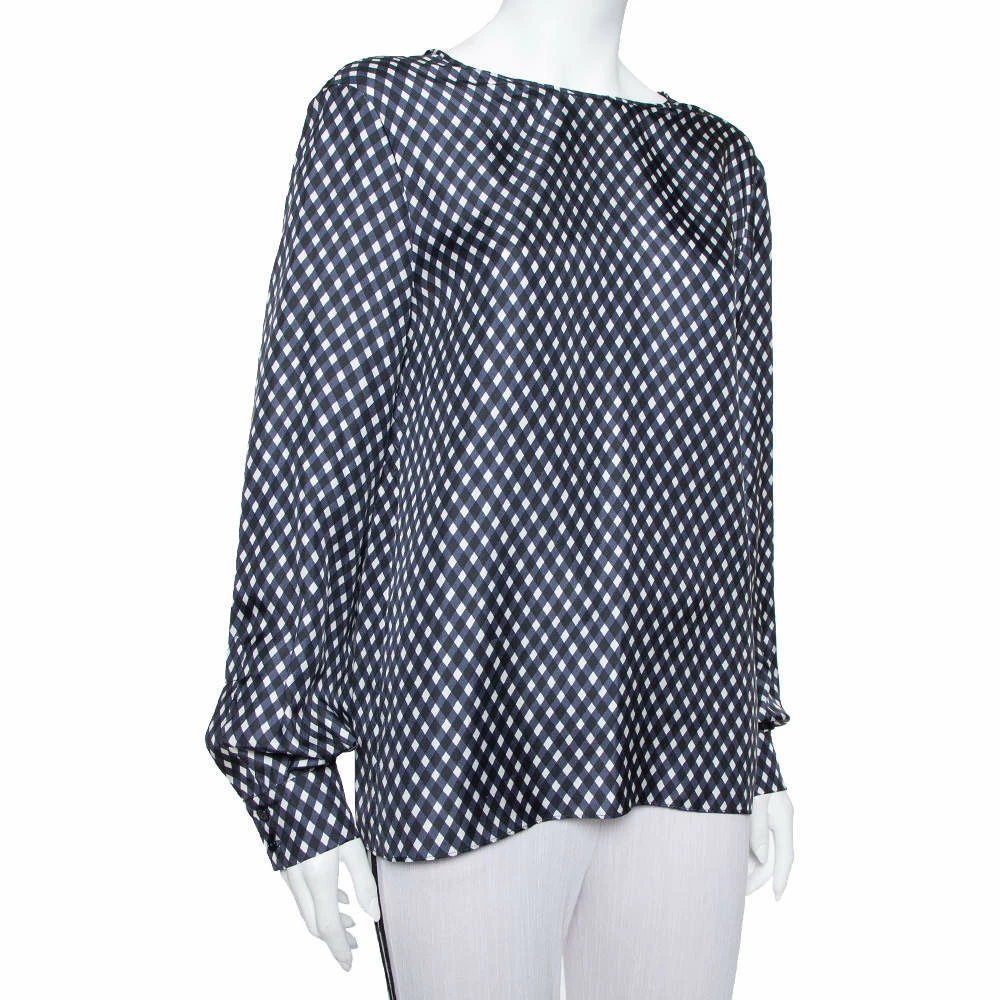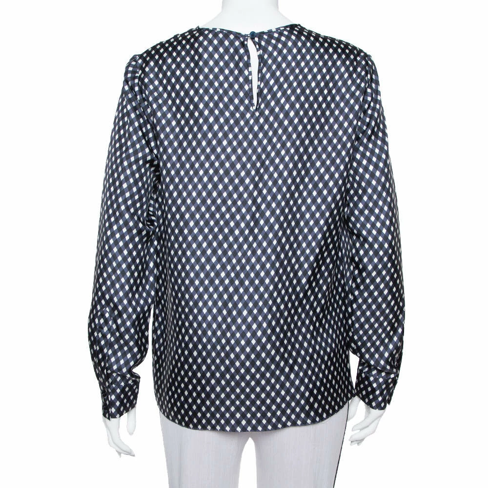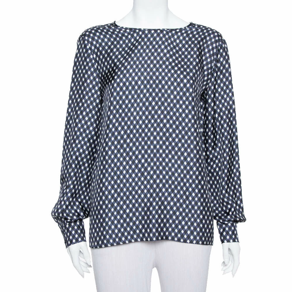 This top by Stella McCartney skillfully merges elegant tailoring and check patterns with a casual, oversized silhouette. The women’s silk top has a comfortable fit and a design that will look great with both pants and skirts.