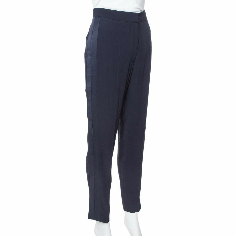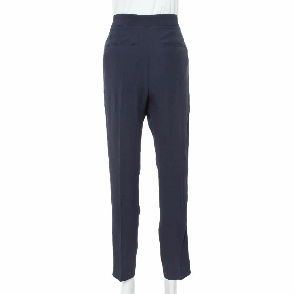 These trousers from Stella McCartney is a creation that you cannot let go of. They have been crafted from crepe fabric and features a navy blue shade all over. These trousers are styled with side slit details. They are great for casual occasions and will pair well with high heels.
