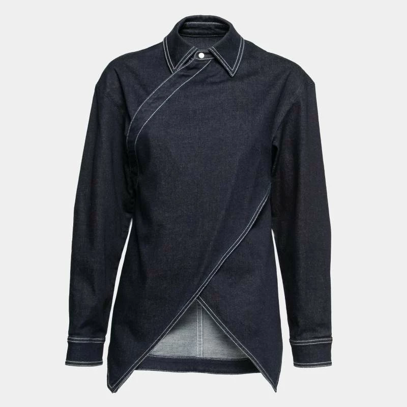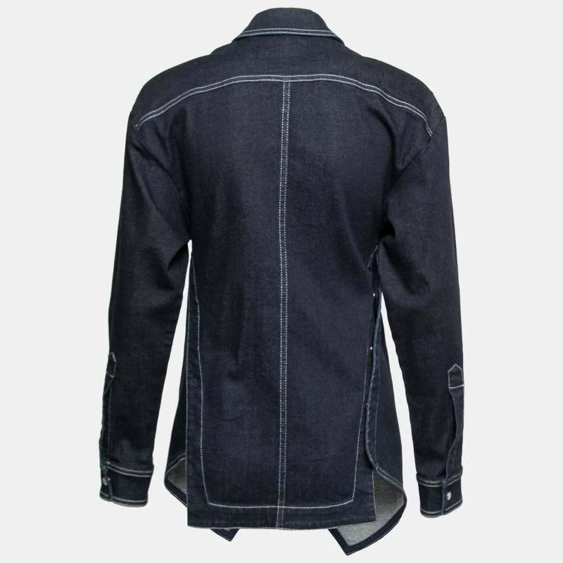 Elevate your casual edits with a Stella McCartney blouse that is simple and easy to style. This one has been tailored finely using denim material. The creation is accentuated with a slit design and comes with long sleeves.