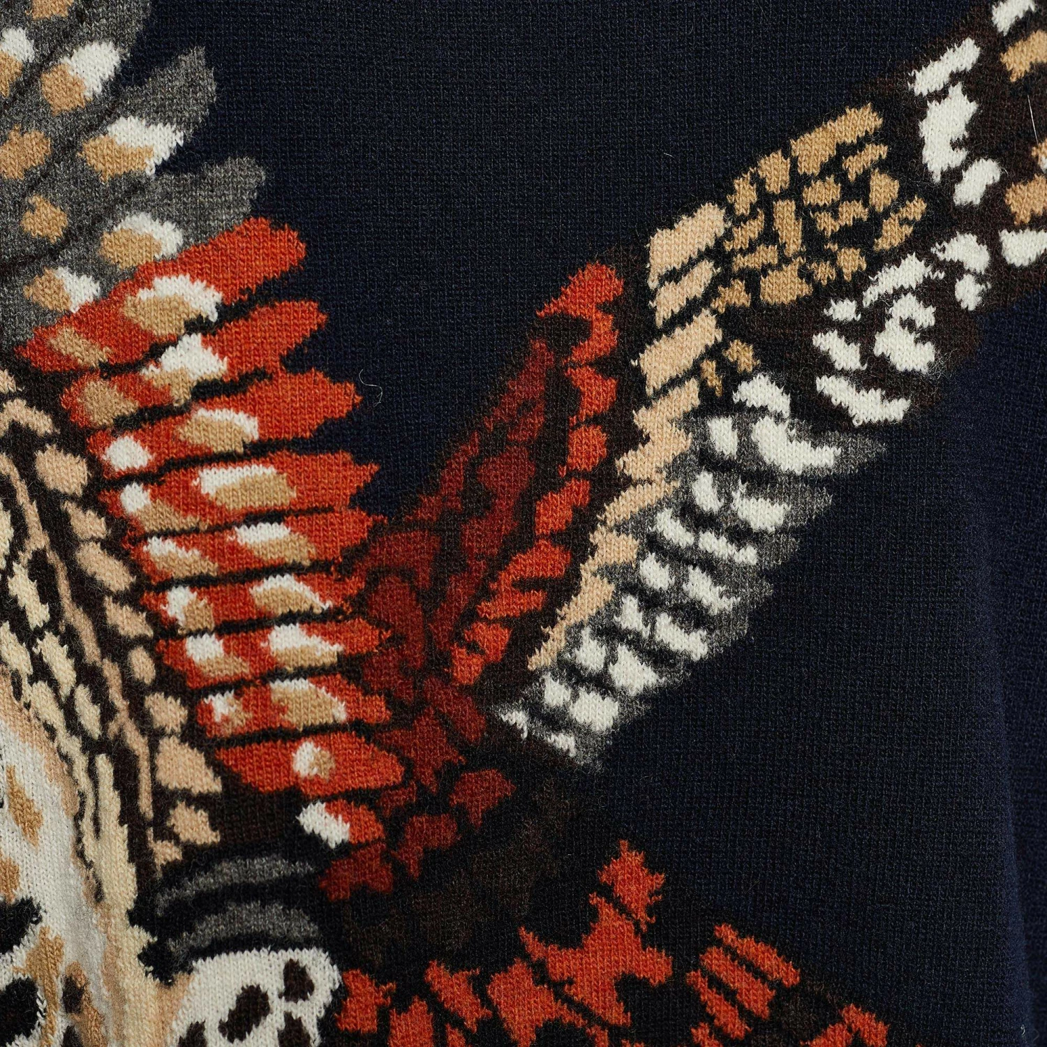 Update your winter wardrobe with this dress from Stella McCartney. It is fashioned in navy-blue jacquard fabric, with an eagle accent highlighting the front. It sports a comfy fit with long sleeves. This Stella McCartney creation awaits to be yours!