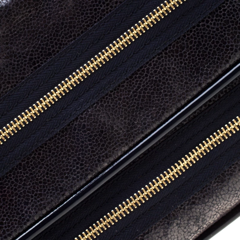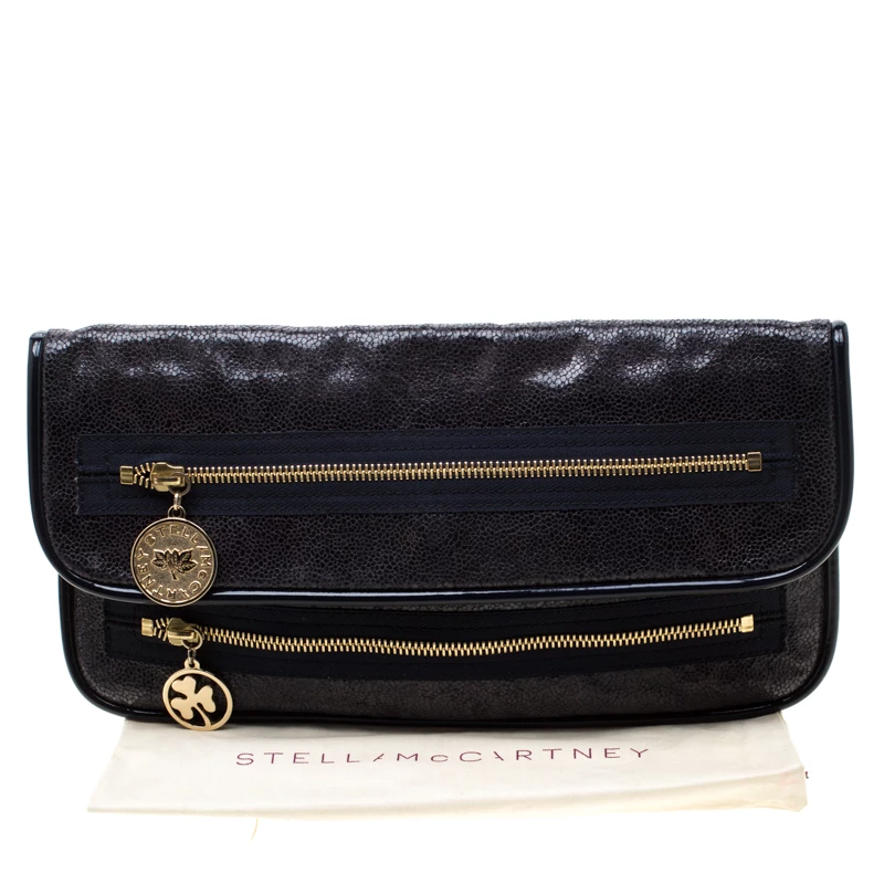 Made of faux leather, this clutch from Stella McCartney is a creation worthy of being yours. It is designed in a navy blue hue, and it has double zip detailing on the front. The interior is satin lined and will hold your basic necessities.