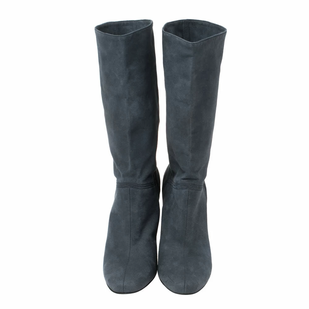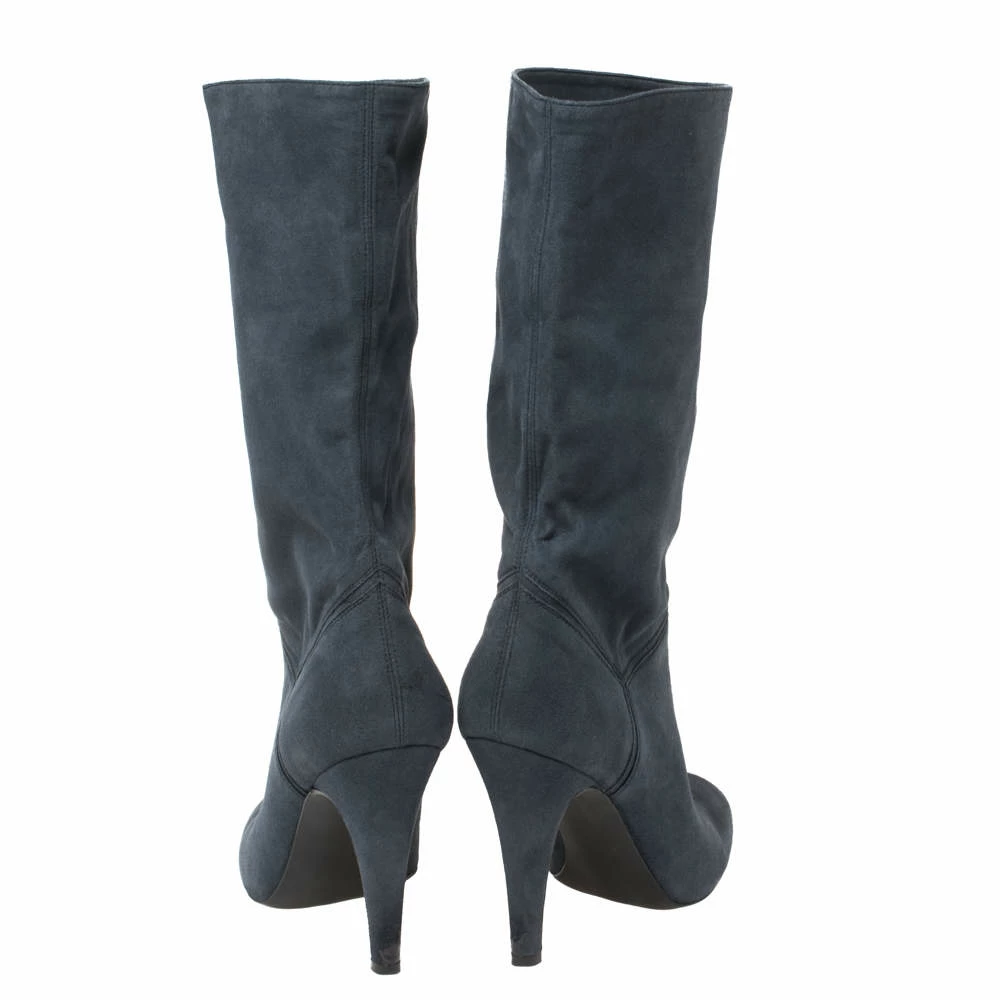 Stella McCartney’s boots define the power of modern women with utter grace. Crafted in faux suede, the pair is fashioned in a mid-calf style, which is sure to add a dramatic touch to your look. It flaunts almond toes, towering heels, and a comfortable silhouette, which creates an impressive look for the pair. Ideal to be worn with tights or short skirts would update your style statement with a whole new definition.