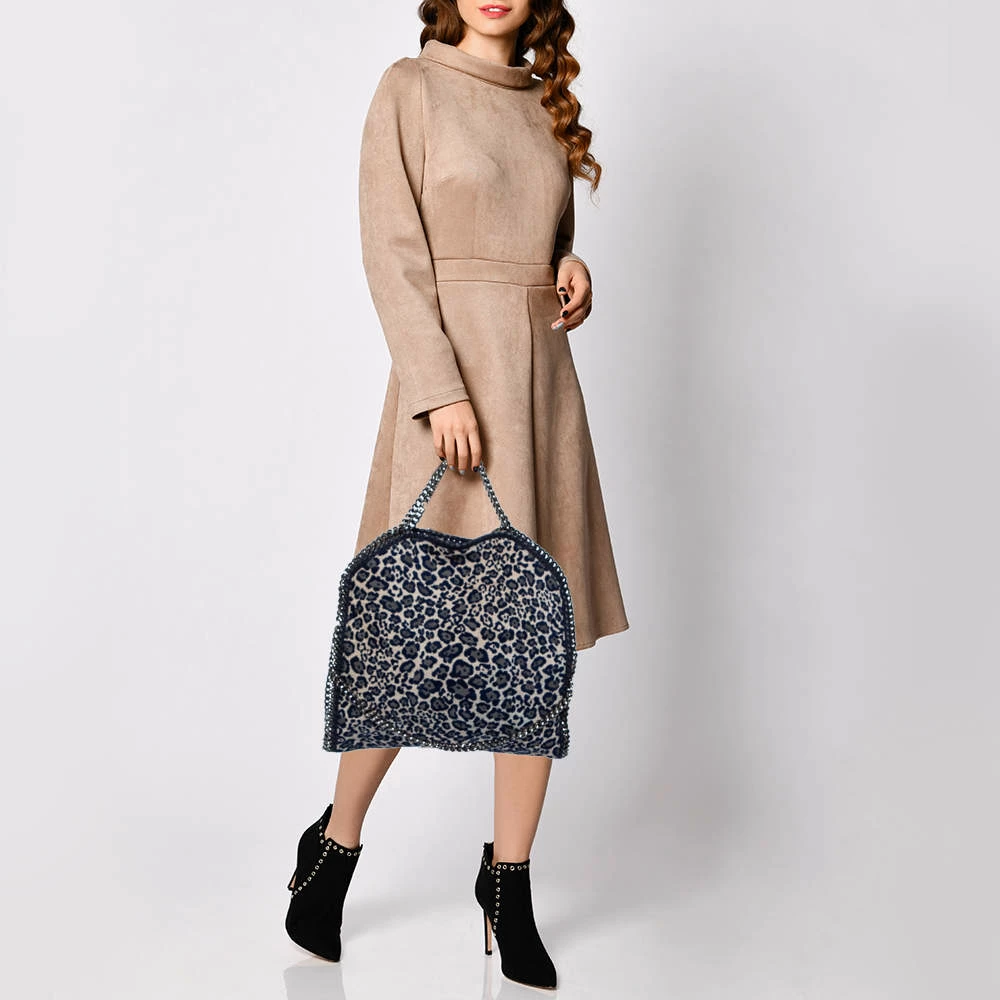 This Falabella tote from Stella McCartney is one of the most loved designs from the sustainably conscious label. Crafted from leopard-printed velvet, it is durable and stylish. While the chain detailing elevate its beauty, the fabric-lined interior will dutifully hold all your daily essentials. You can swing this tote using the chain handles.