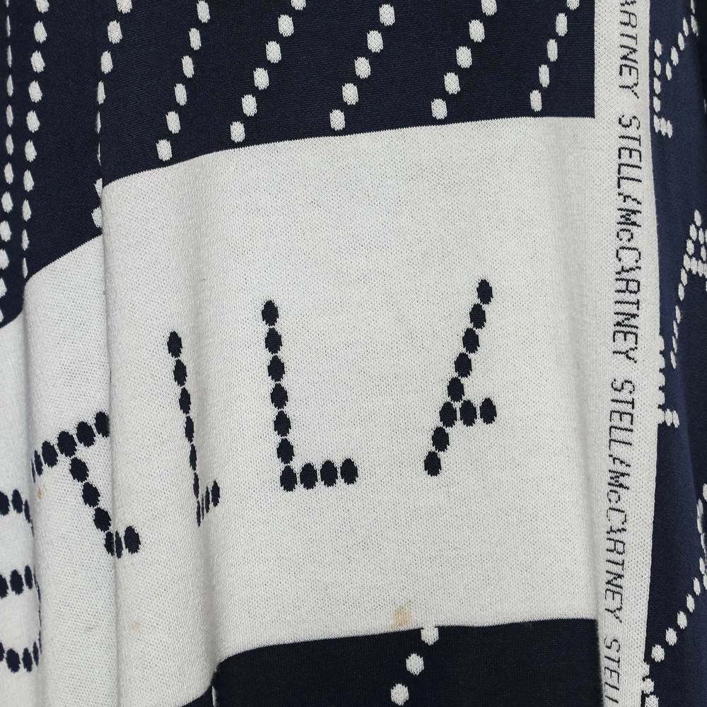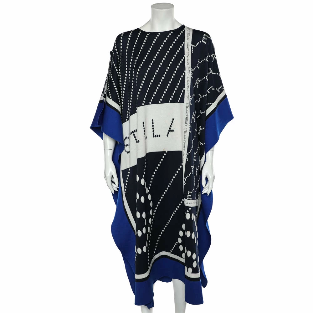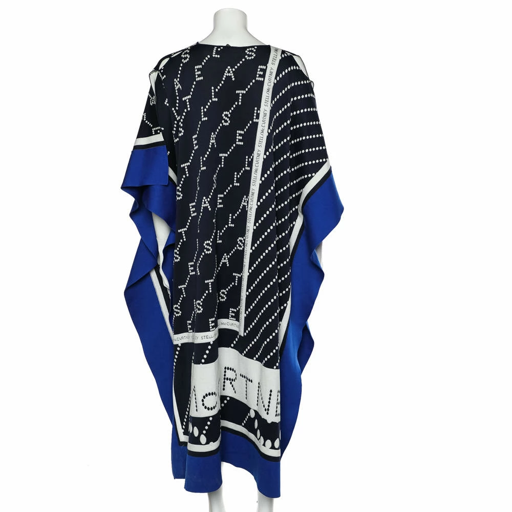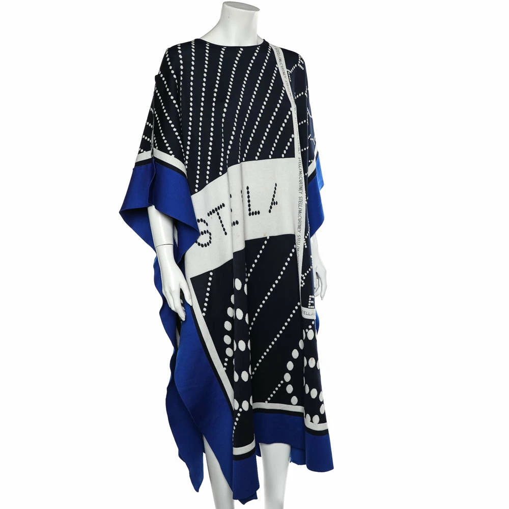 This poncho from the House of Stella McCartney is a great buy. It is tailored using navy-blue logo Intarsia knit fabric. This long poncho will be your favorite vacation accessory.