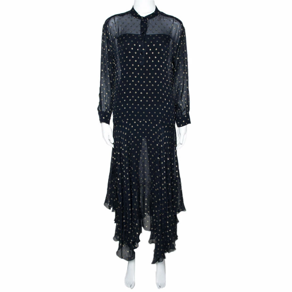 Dress up in this Stella McCartney dress and have everyone go ga-ga over your style. Look chic and confident look with this pretty navy blue, chiffon sheer dress. Made in the finest silk blend, this attire makes a statement of its own.