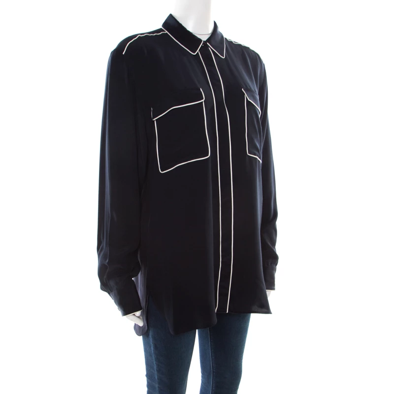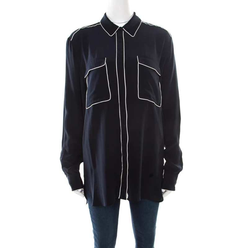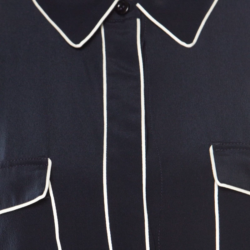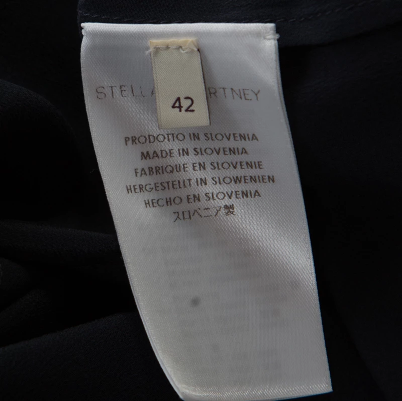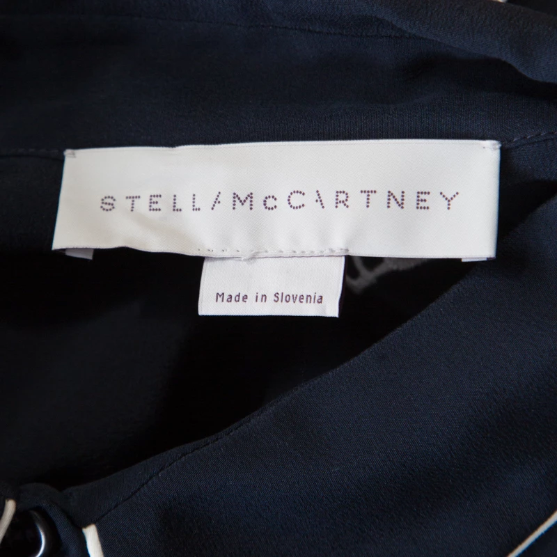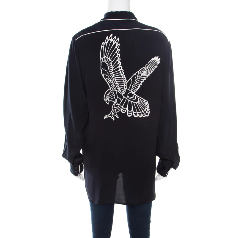 This Stella McCartney top is the perfect balance between retro and modern chic. Designed in a unique navy blue color, it would make all jaws drop in no time with its bold eagle embroidery at the rear. Tailored from luscious silk, this piece is a perfect blend of fashion and comfort.