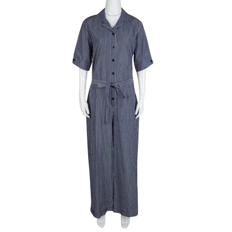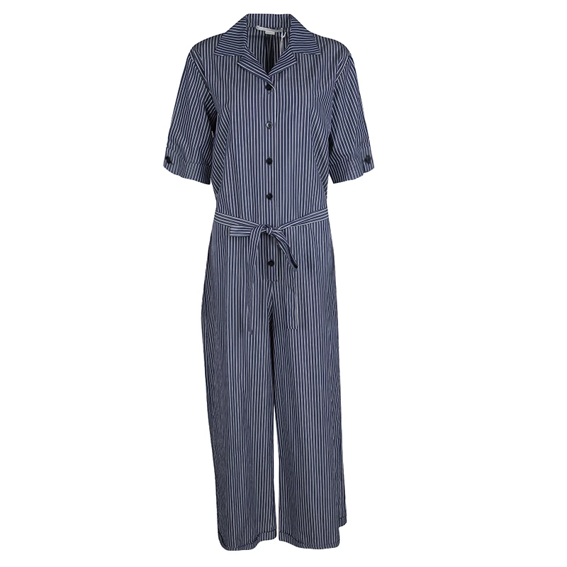 Crafted using fine quality cotton for refined comfort, this jumpsuit from the house of Stella McCartney is the epitome of a casually trendy look. Designed with vertical stripes that never go out of style and a sash-tie belt at the belt for a snug fit, this jumpsuit is the perfect piece of apparel to brave the hot summers with some swank.