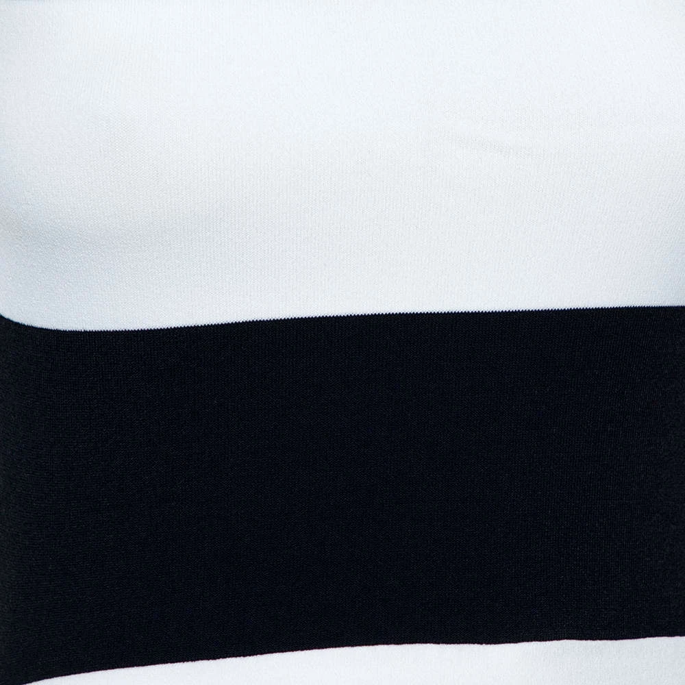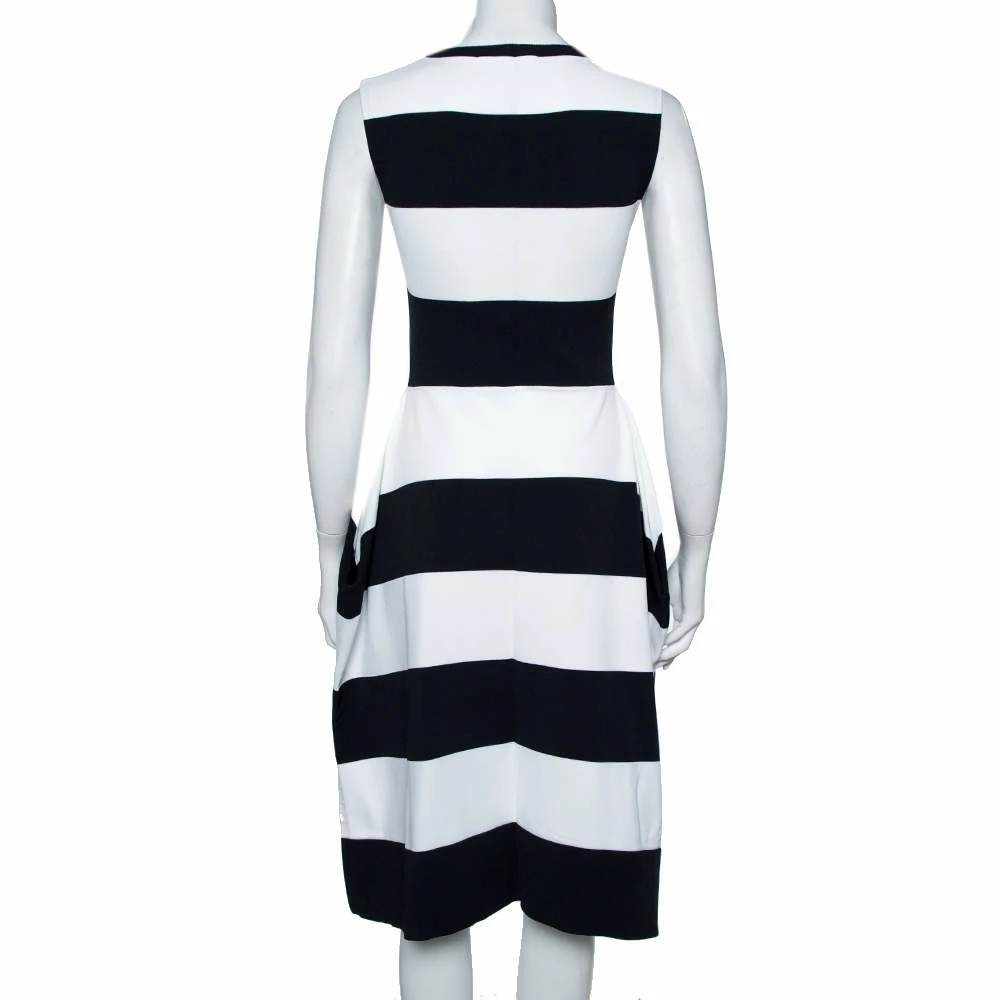 A melange of sophistication and style, this dress from Stella McCartney is perfect for a feminine look. Crafted with a quality fabric blend, the outfit is designed in a sleeveless silhouette with navy blue and white broad stripes all over. Graced with a comfortable midi length, team this lovely creation with high heels.
