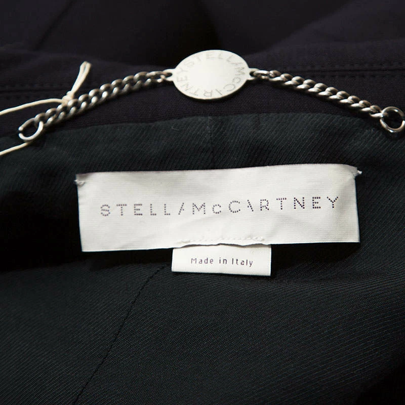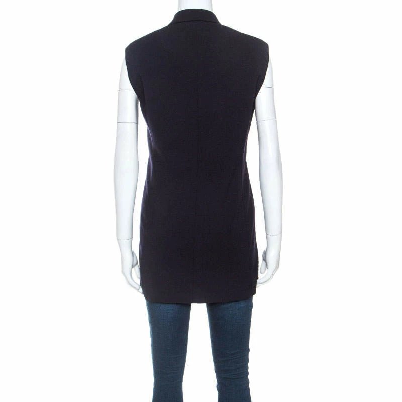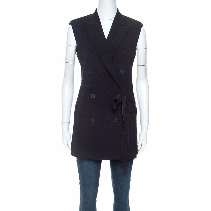 This navy blue vest from Stella McCartney has been made from the finest materials and styled to glorify the fashionista in you. The piece features a double-breasted style with gold-tone zip details on the side and a tie at the front. The vest can be assembled over dresses or with pants.
