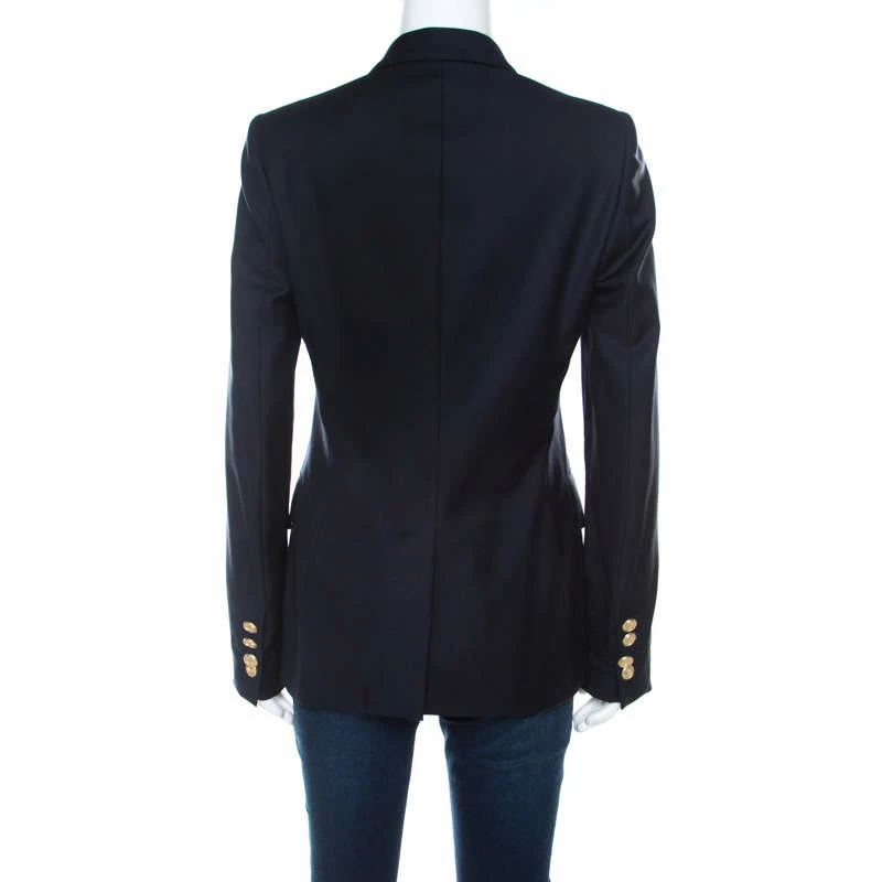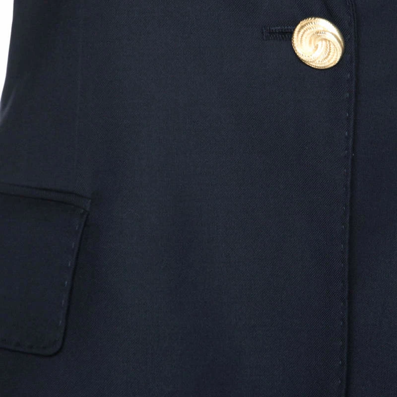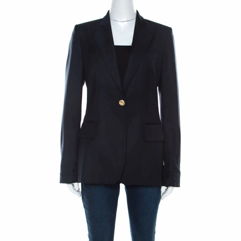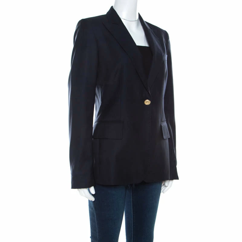 This smart blazer from the house of Stella McCartney will amp up your style quotient. Lend a classic touch to your look when you wear this navy blue creation, crafted from quality wool. Look stunningly captivating in this gorgeous formal blazer which is complete with a single button fastening and long sleeves.
