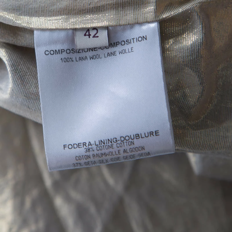 - Fabric: Shell: 100% Wool ( Lining: 38% Cotton, 37% Silk, 25% Polyamide )