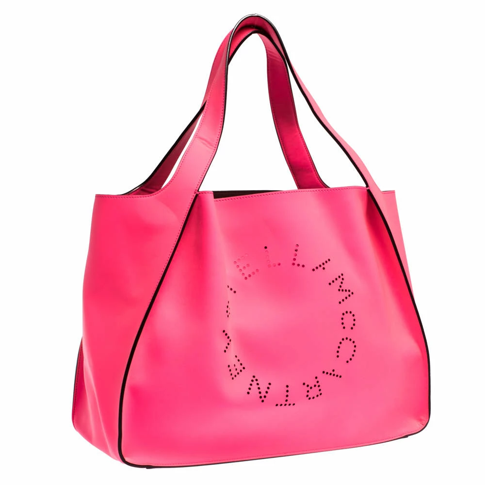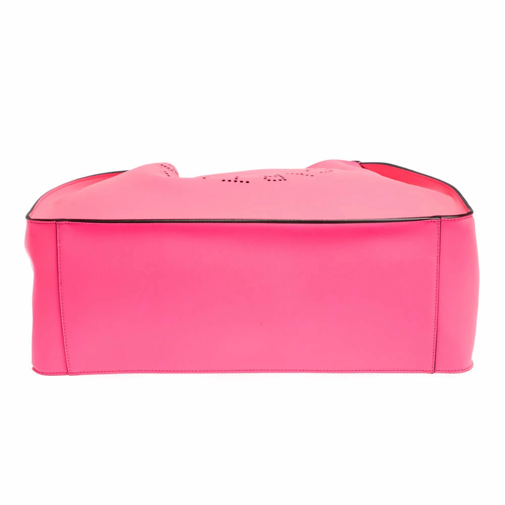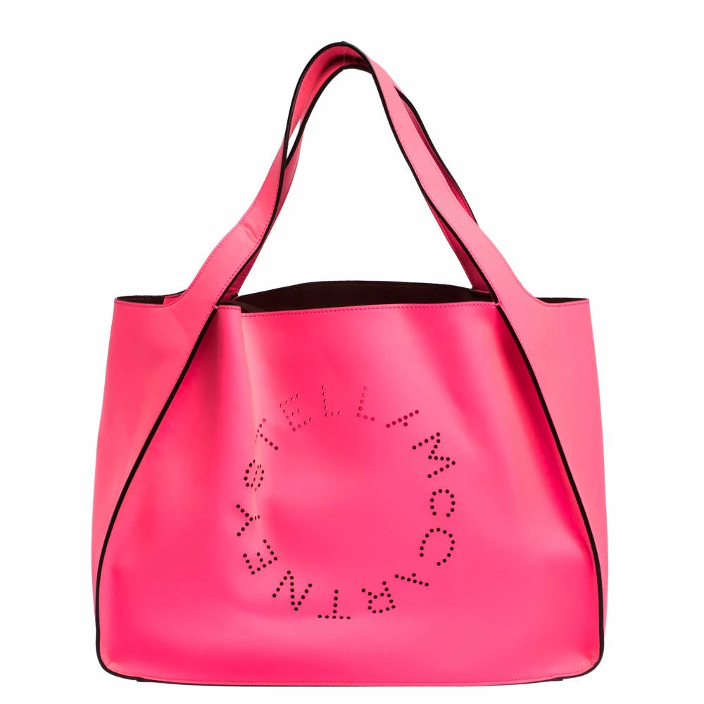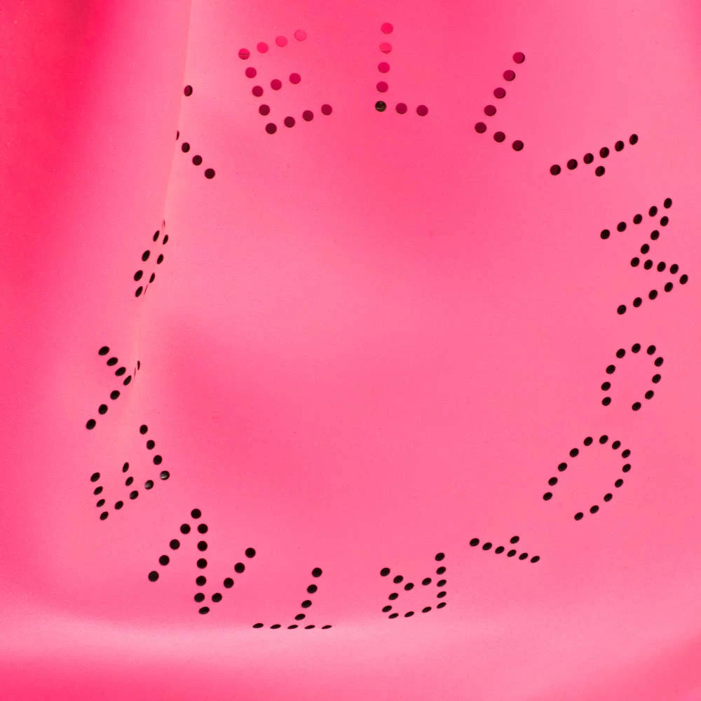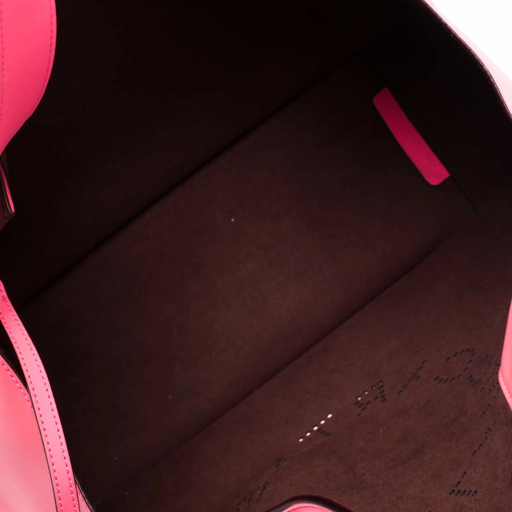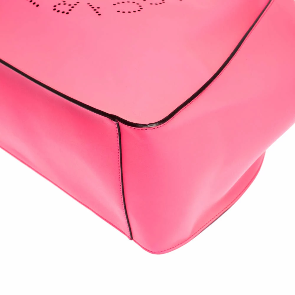 This stylish and feminine tote bag by Stella McCartney will make a statement. Crafted from faux leather, it carries a lovely hue of neon pink. This tote is styled with dual handles, perforated logo detailing on the front, gold-tone hardware and a spacious Alcantara-lined interior.