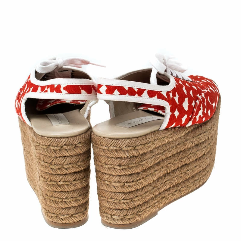 Stella McCartney’s designs always have an oomph factor to them and these funky and comfy wedges prove it too. Made from orange and white printed canvas, this pair features lace-ups on the vamps, slingback straps and stitched toes. Featuring 10 cm heels, these espadrilles wedges come with padded faux leather insoles.