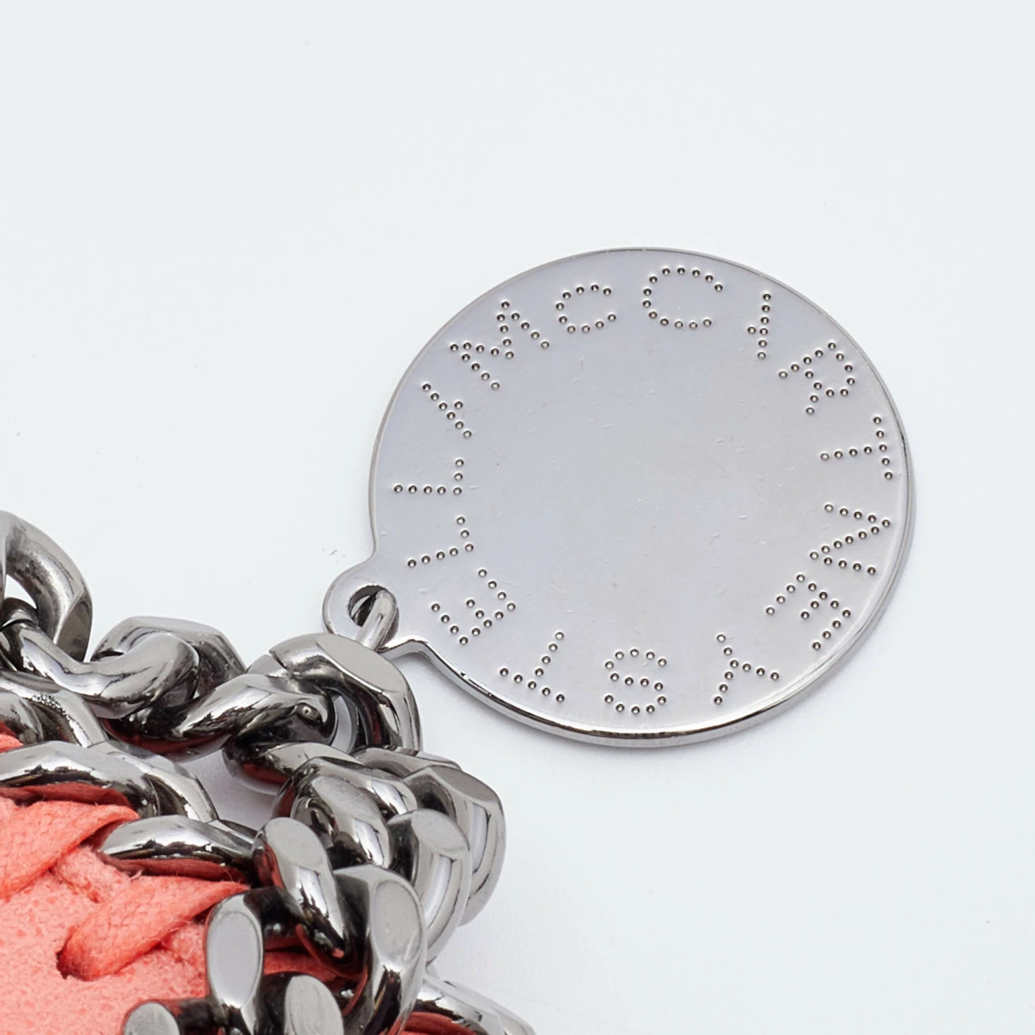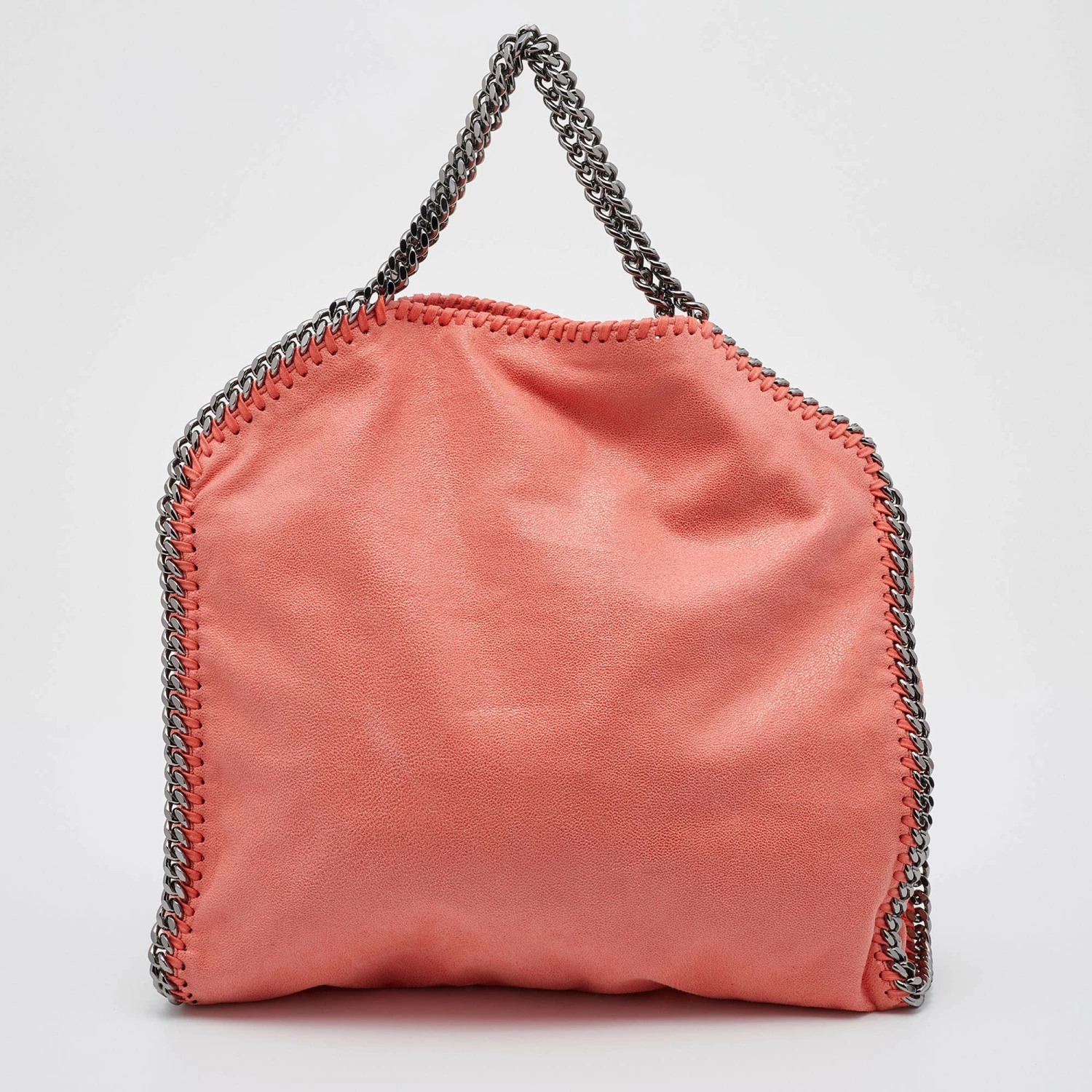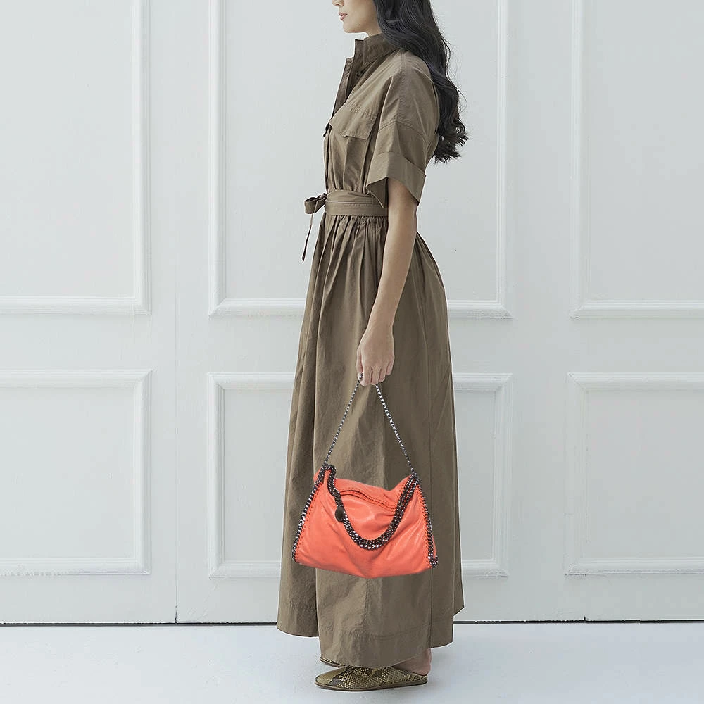 The chain whipstitch detailing beautifully outlines this Stella McCartney Falabella bag. Crafted from faux leather, it is adorned with gun metal-tone accents, and its fabric-lined interior can safely store your necessities. Carry it in a chic way with dual handles at the top.