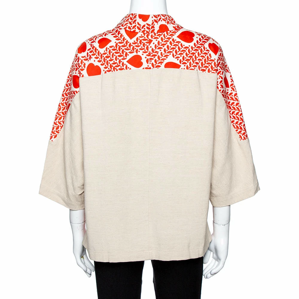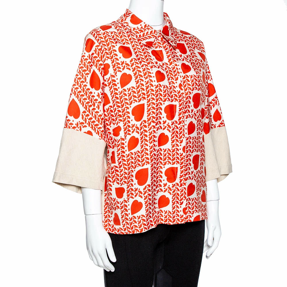 This bold and playful blouse will make sure you wear your heart on your sleeve! Crafted from silk and linen, this lovely orange-hued creation has a heart print throughout. The blouse has panel detailing on the sleeves & back and a chic collar to finish.