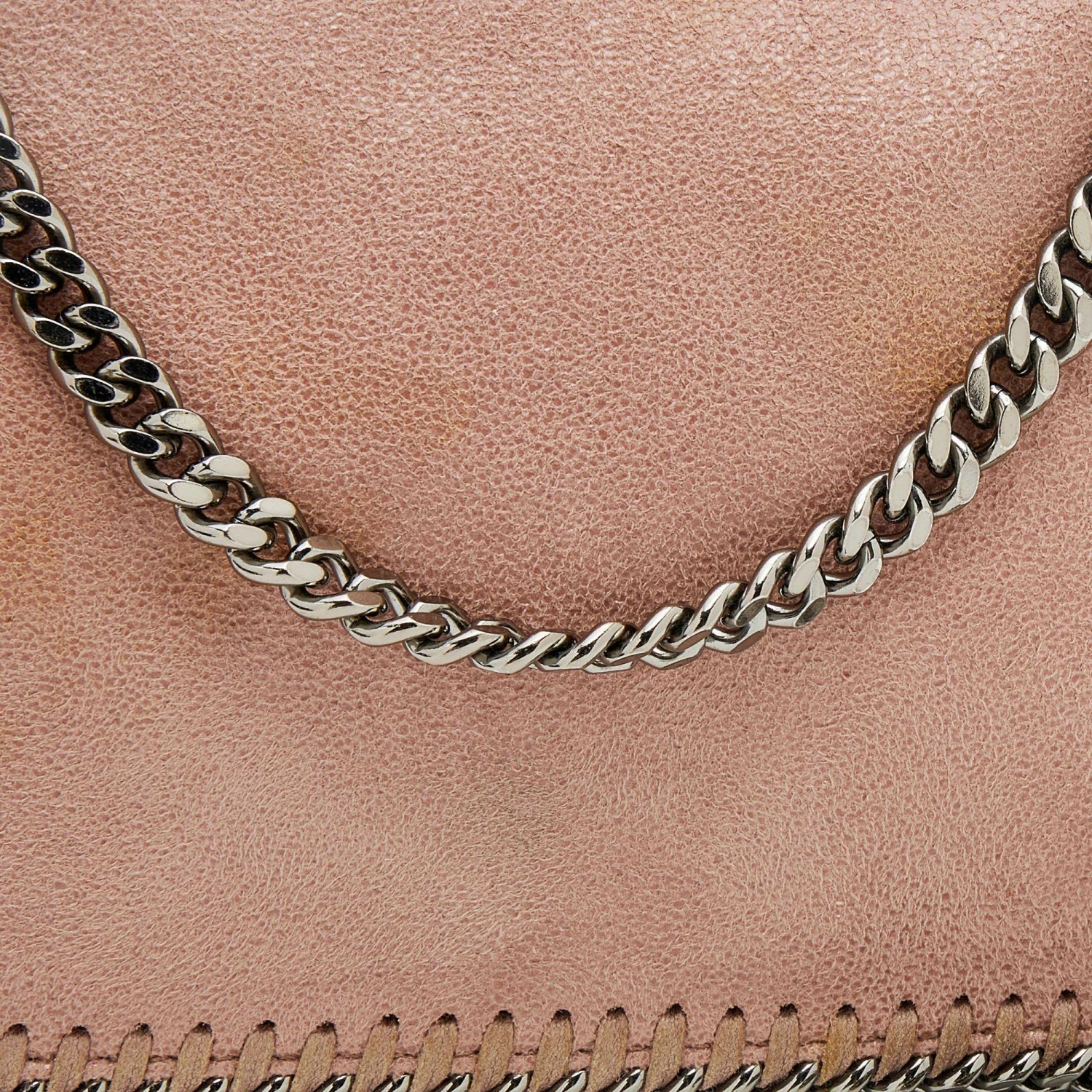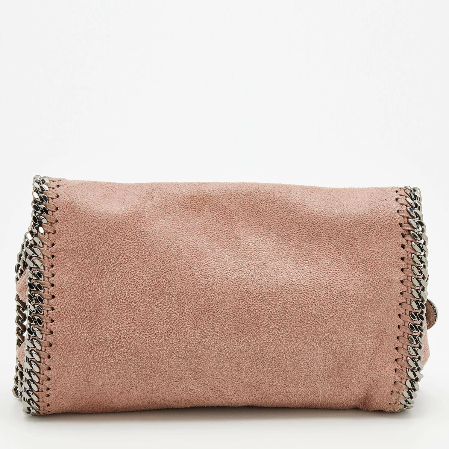 The chain whipstitch detailing beautifully outlines this Stella McCartney Flabella bag. Crafted from faux leather, it has been adorned with silver-tone accents, and it can be carried with a chain shoulder strap. The fabric-lined interior can safely store your party essentials and is secured by a flap closure.