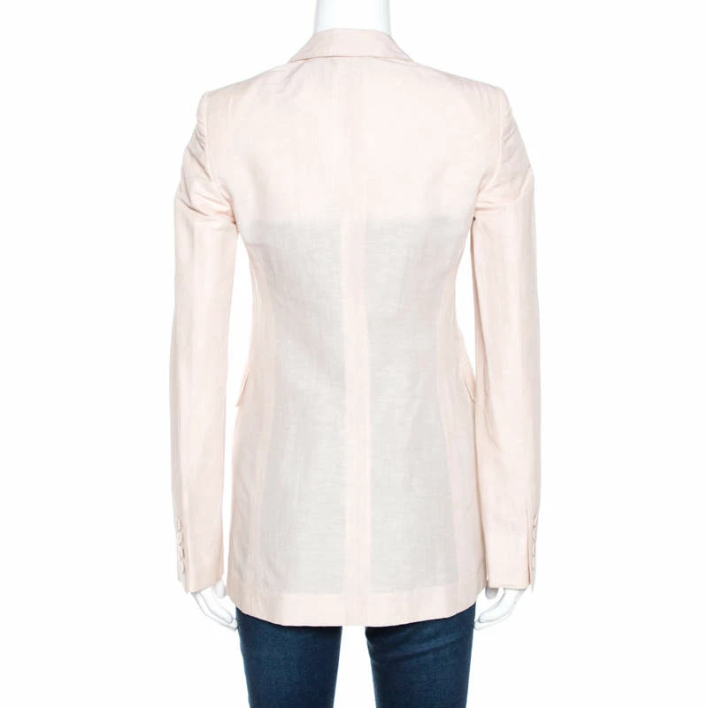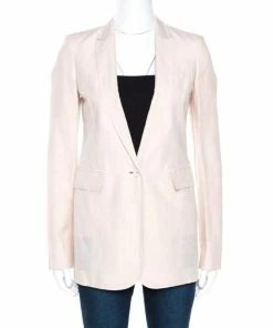 This Stella McCartney blazer is designed to lift your wardrobe. The linen-cotton blazer features sharp-cut lapels, a front button and a pale pink hue. Tailored to fit you perfectly, this piece will offer a smart, formal look.