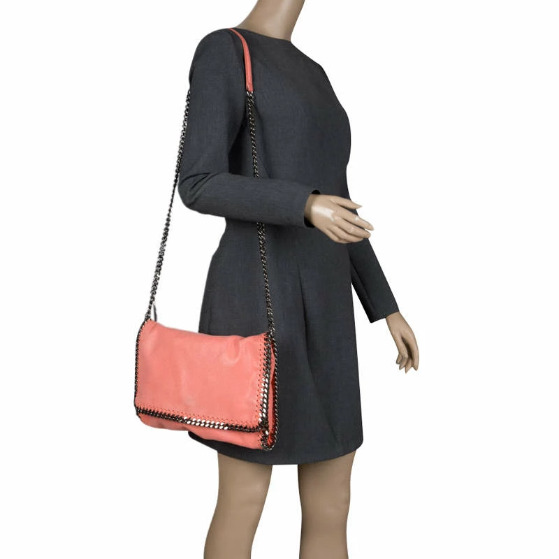 Stella McCartney is known for her chic designs and this Falabella bag perfectly embodies this trait. Crafted in Italy from peach faux leather with a fabric interior, this bag has a beautiful exterior and black tone chain details at its contours and handle. This bag can be carried with your everyday outfits.