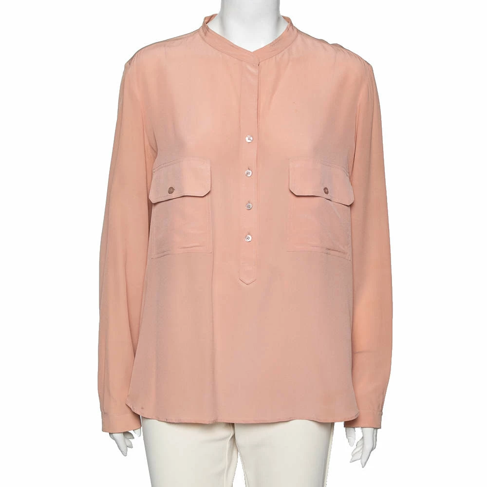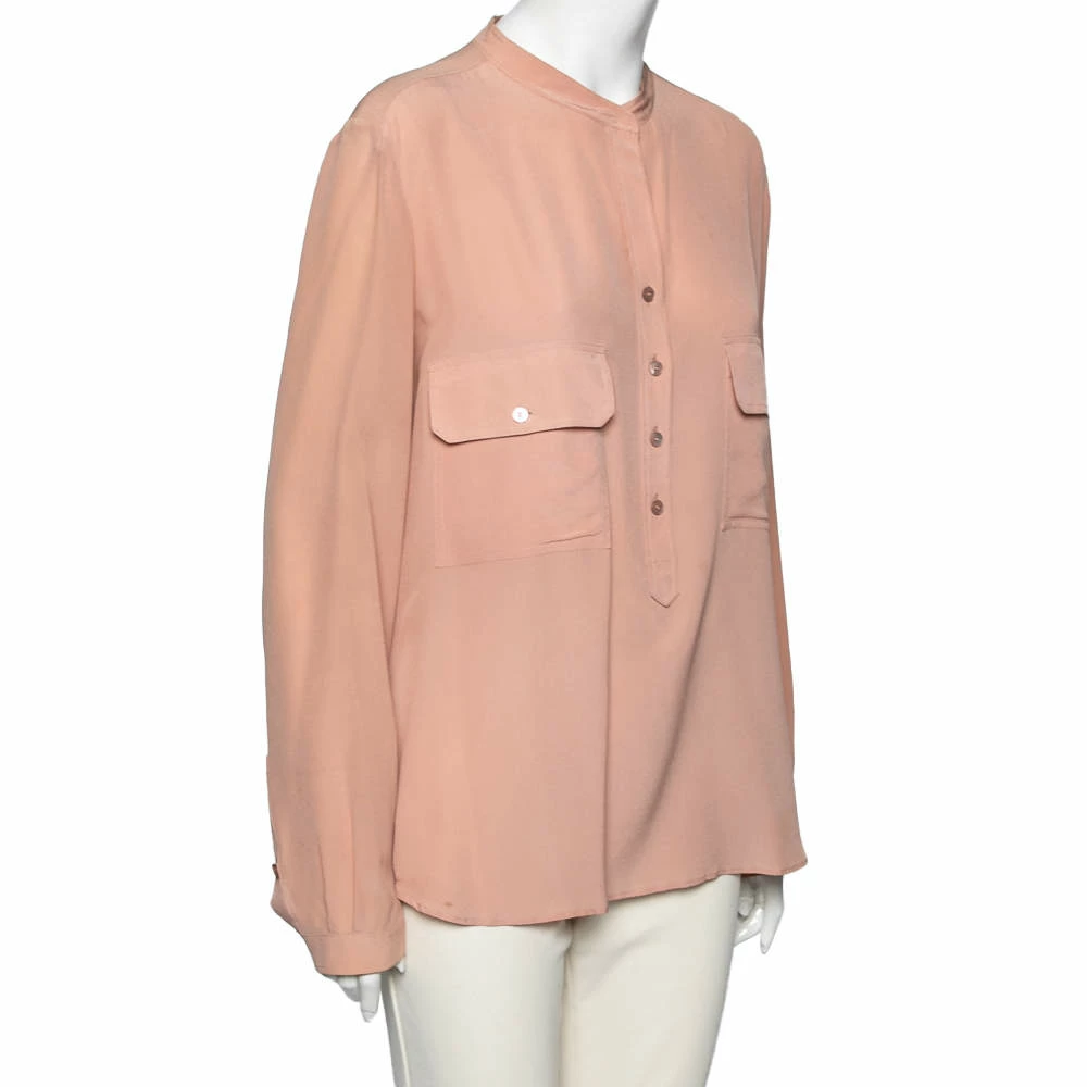 Add a chic-feminine touch to your attire with this beautiful blouse from the House of Stella McCartney. It is designed using peach silk fabric, which is elevated with pocket details on the front. It is provided with buttoned closures and two external pockets. This blouse is an elegant creation you need to own!