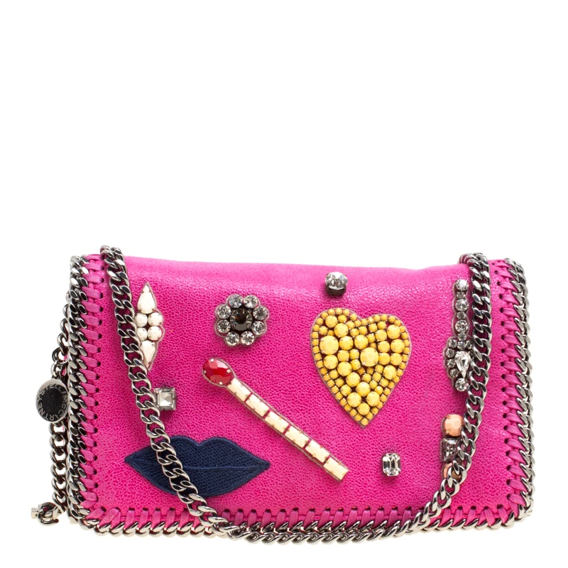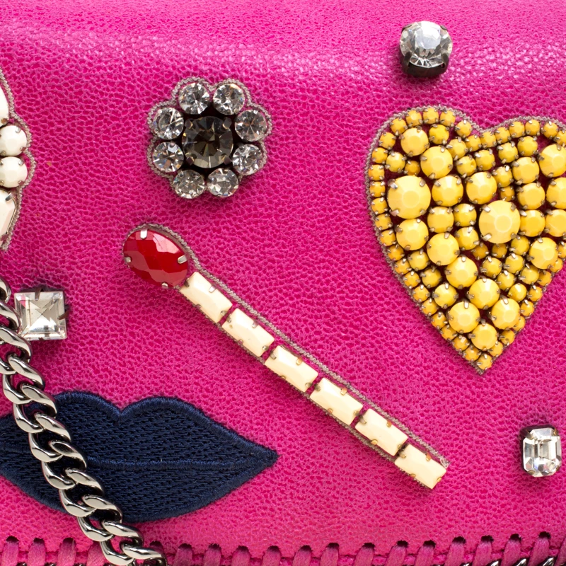 A refreshing version of your Falabella bags, this crossbody bag is super feminine and cute. Flaunting lovely crystal embellishments on the front flap, the bag is a blend of unique details and signature designs like the chain-link detail on the contours, the likewise chain-link crossbody strap and pink faux leather exterior. It has a fabric-lined interior that will stow your essentials. This bag will give your wardrobe a fashionable update.