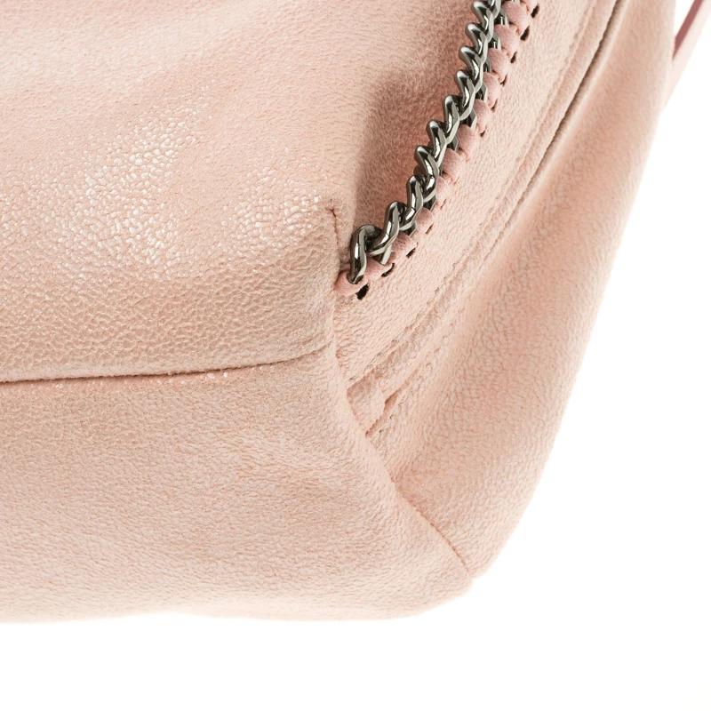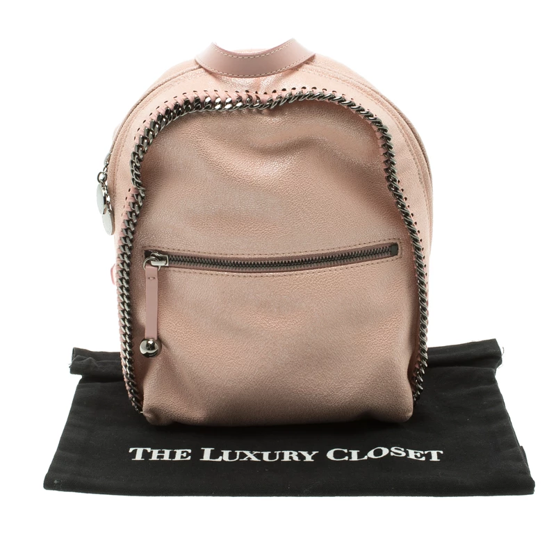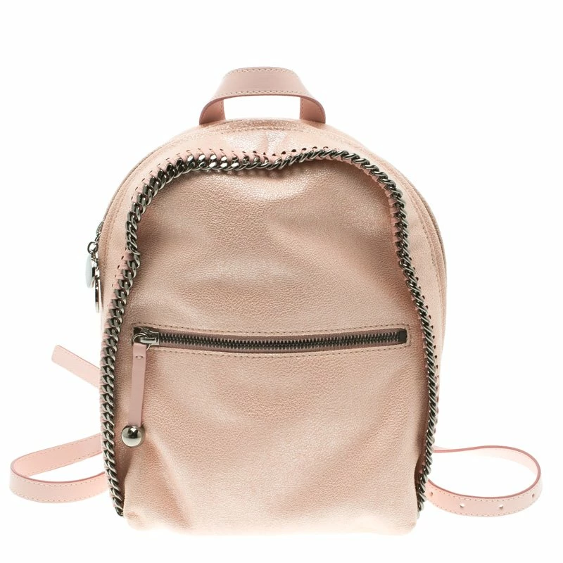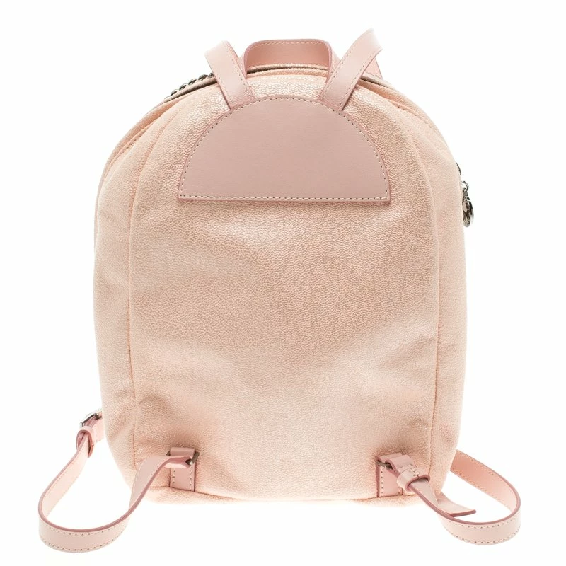 To accompany all your casual outings in the most fashionable way, Stella McCartney brings you this Falabella backpack that boasts of fabulous style and outstanding details. It flaunts a pink exterior with a front zip pocket and signature chain details. The bag is held by a top handle and two shoulder straps. You’ll surely love calling this backpack your own.