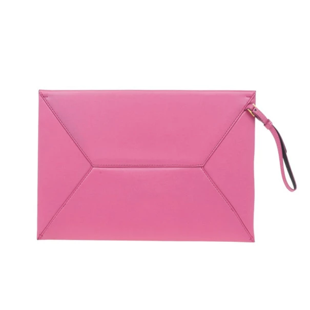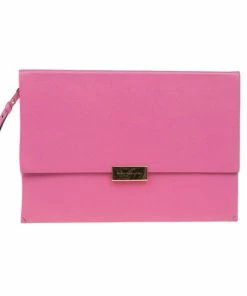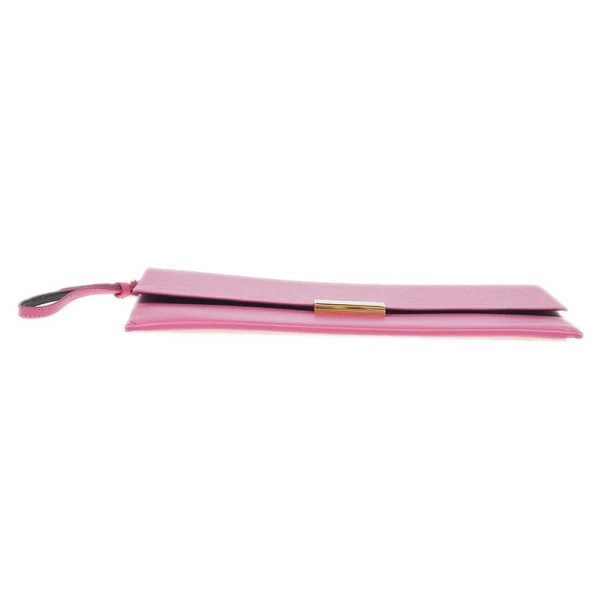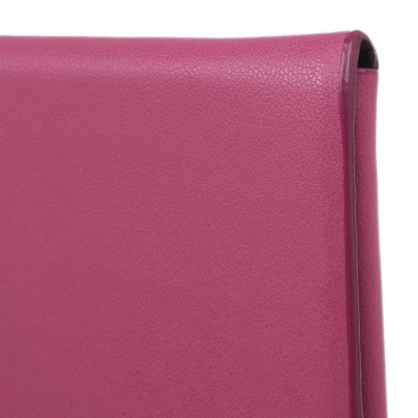 Give your look a pop of color with this Stella McCartney clutch. Its simplistic and contemporary ย envelope design is given a twist with its strong shade of fuchsia, contrasted with the front plaque on the flap. Its wristlet is coupled with a black suede-lined interior.