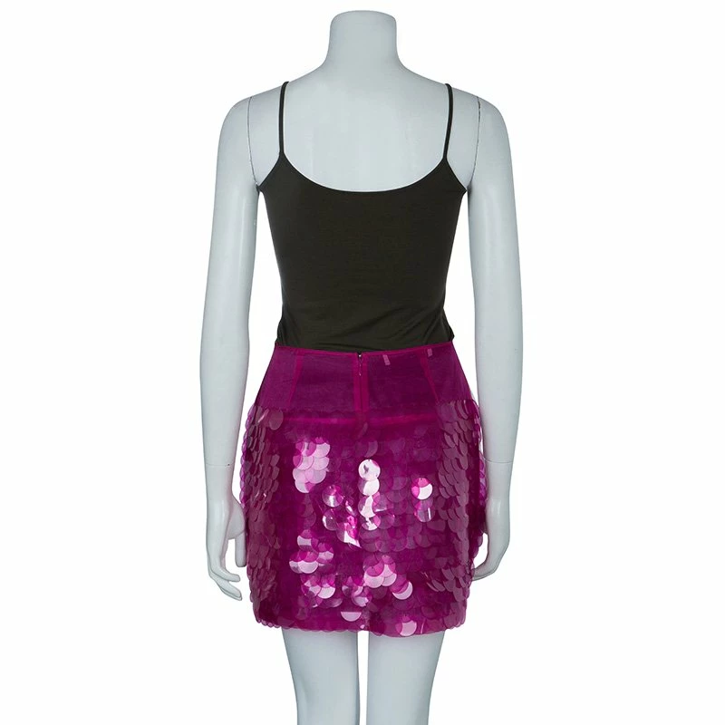 Don’t miss a chance to own this glamorous pink mini skirt from the house of Stella McCartney. It is embellished with pink sequins all over, giving it a hot and sexy look. Crafted from silk it comes with a polyethylene and polyvinyle belt and can be paired beautifully with a matching halter top for the gorgeous party look. The skirt is surely worth grabbing!