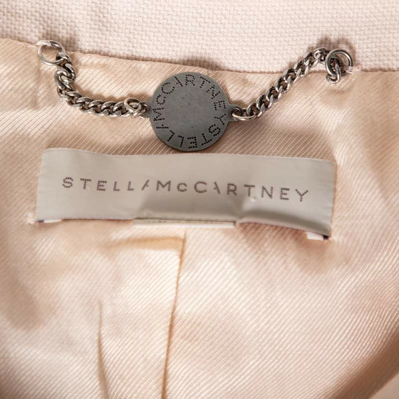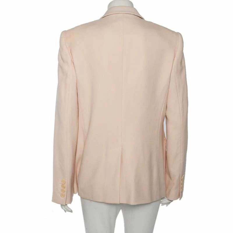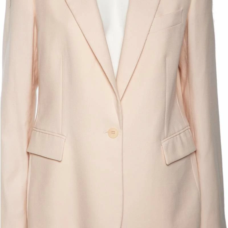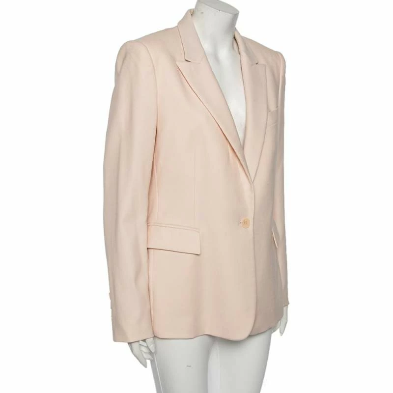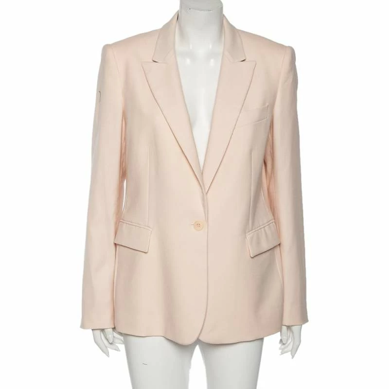 Tailored precisely into an effortlessly chic silhouette, this Iris blazer from Stella McCartney will definitely add an element of luxe and elegance into your attire. It is stitched using pink wool into a double-breasted style. It showcases three pockets, buttoned closure, and long sleeves with buttoned cuffs.