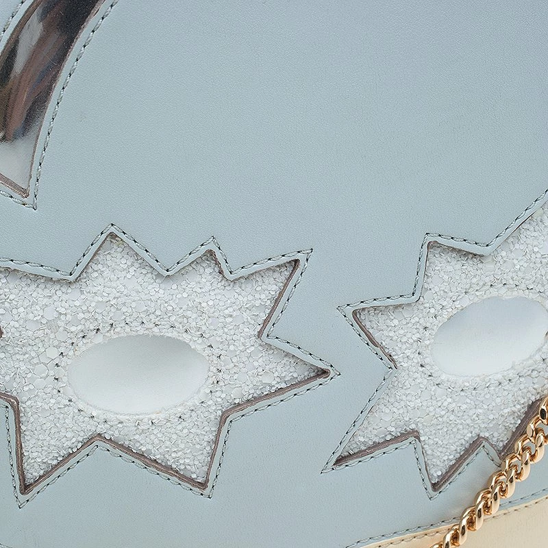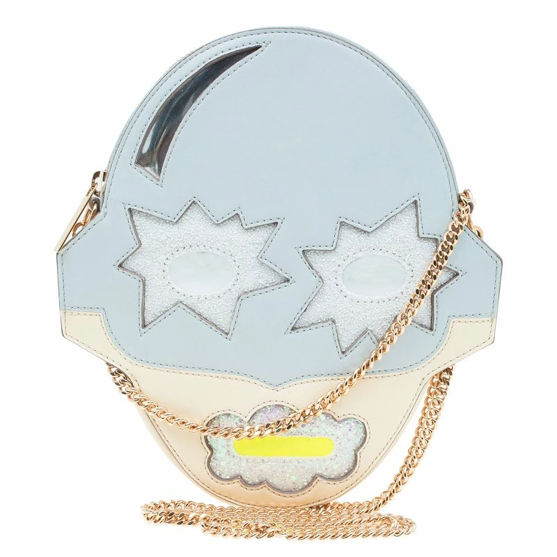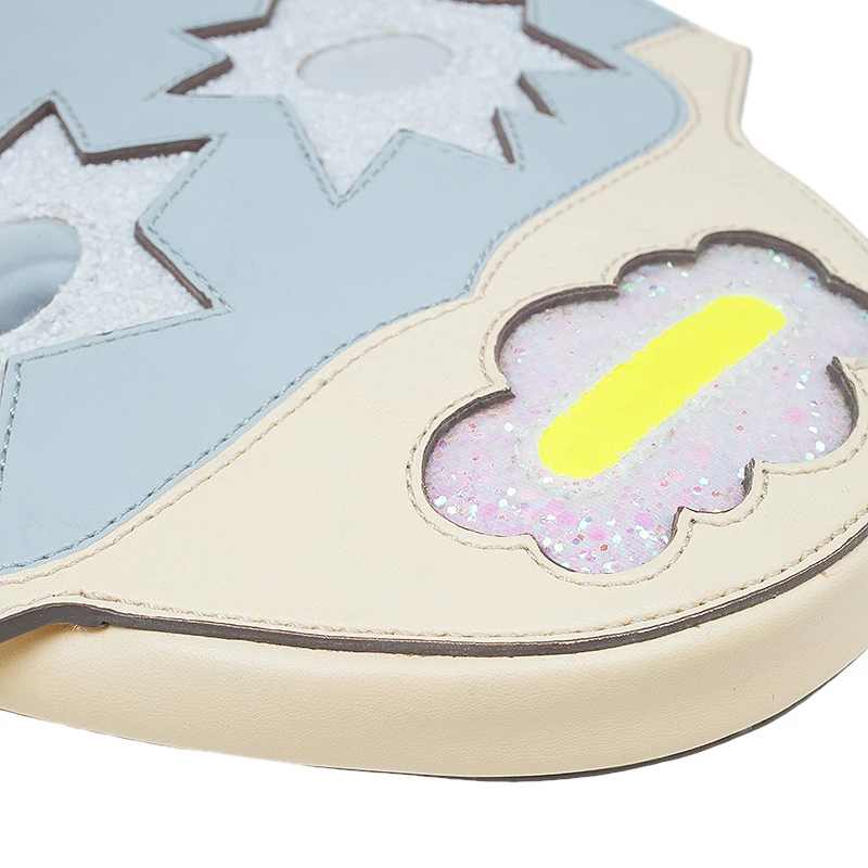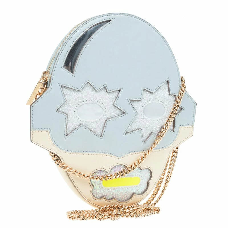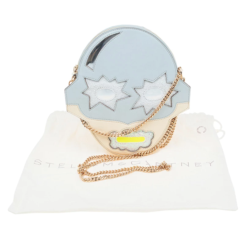 Cute and flexible, this Superstellaheros cross-body will draw all eyes towards you. Crafted from blue and yellow leather and cut into super hero face silhouette, this Stella McCartney bag has multicolored detailing creating a face type front that gives it a youthful and a fun look. It features a gold-tone chain shoulder strap and a zip closure at the top that opens into faux suede lined interior.