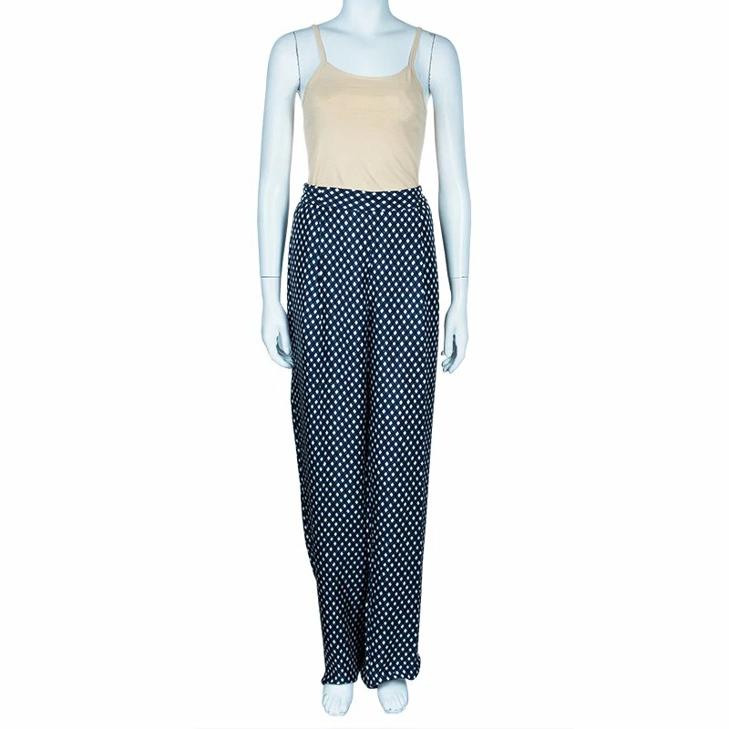 Dress to impress in these Stella McCartney trousers. These have been crafted in 100% silk and are cut in a wide leg fit. A tonal print makes them an ideal choice for a spring day outing with friends.