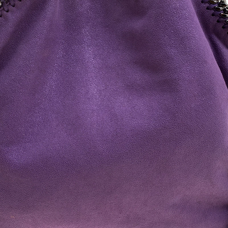 Stella McCartney is known for her chic designs and this Falabella tote perfectly embodies this trait. Crafted in Italy from purple faux leather with a fabric interior, this tote has a beautiful metallic exterior and black tone chain details at its contours and as handles. This bag can be carried with your everyday outfits.