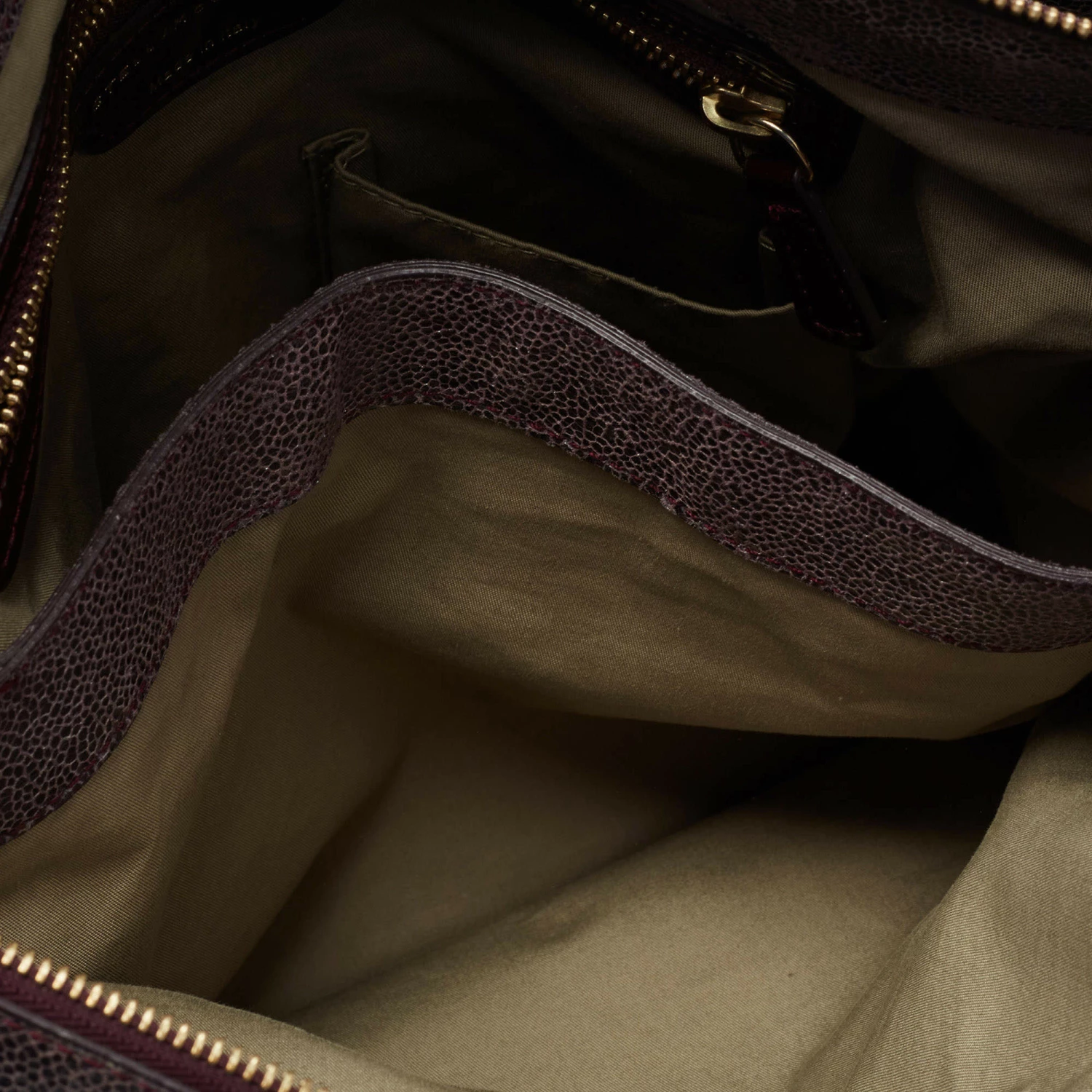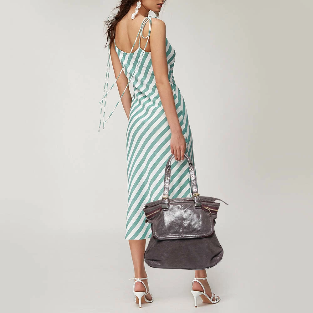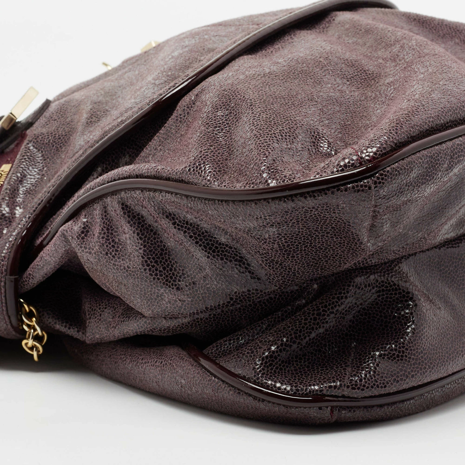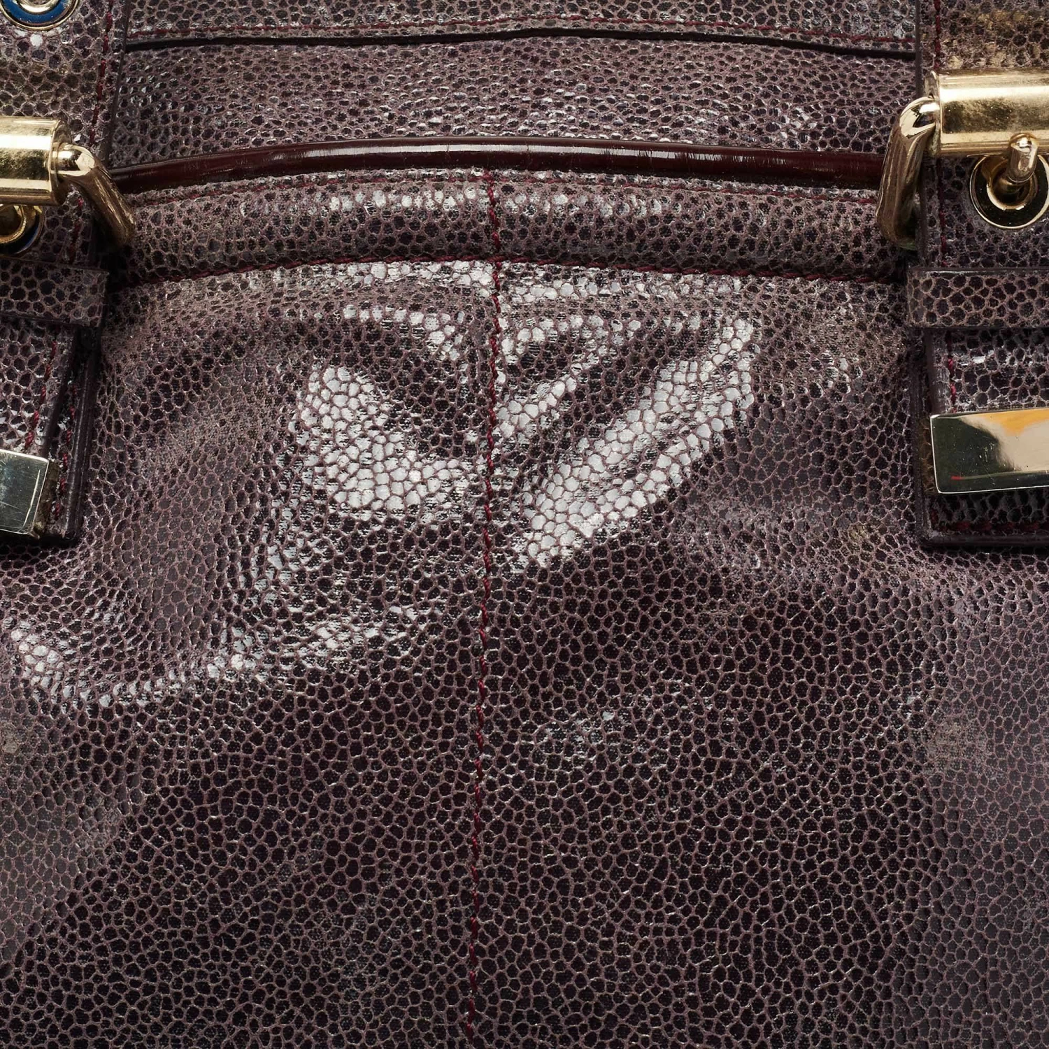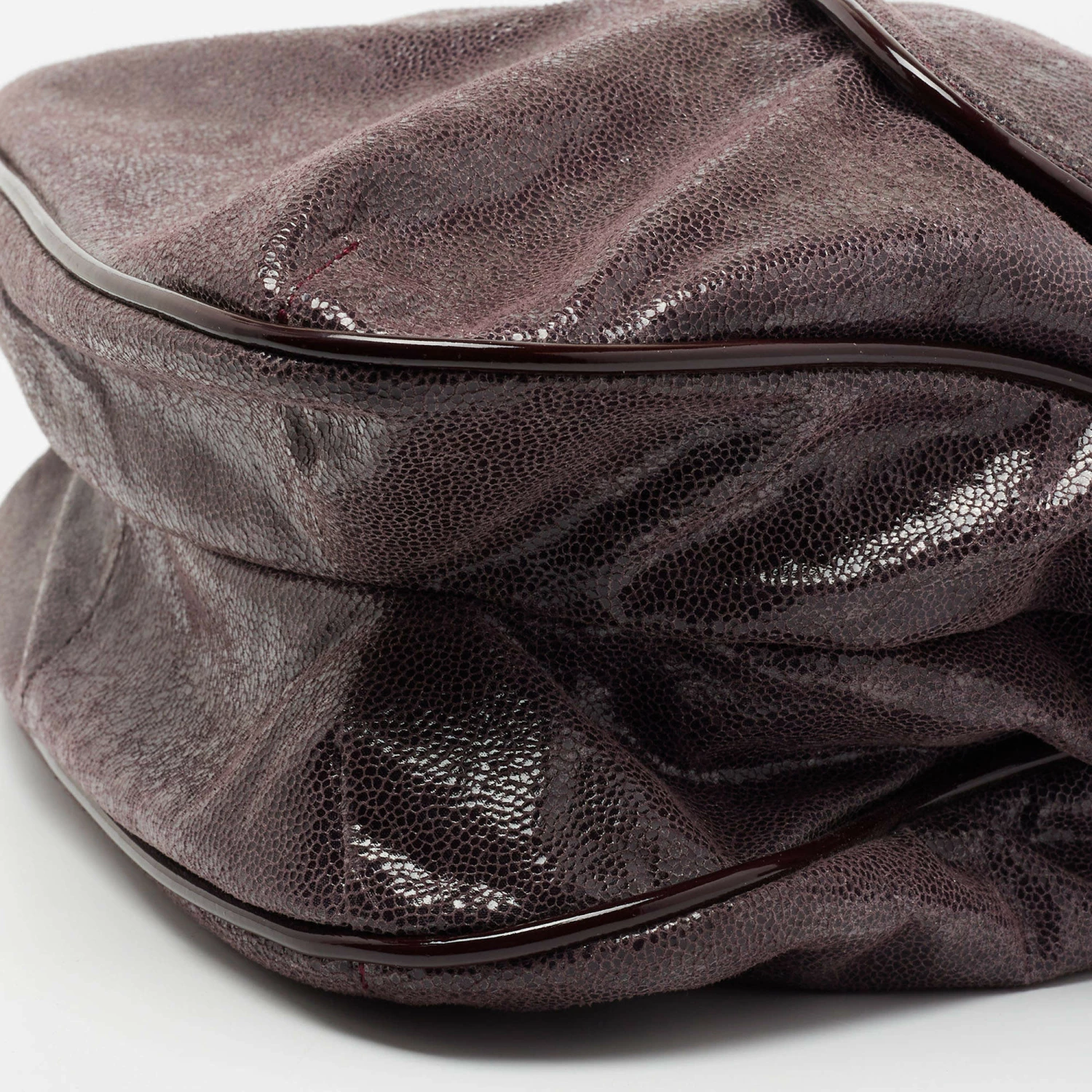 Complete your elegant looks with this lovely purple Stella McCartney tote made with faux suede and patent leather. It features a fabric interior, a detachable zip pouch, and stylish dual handles, making it ideal for long travels.