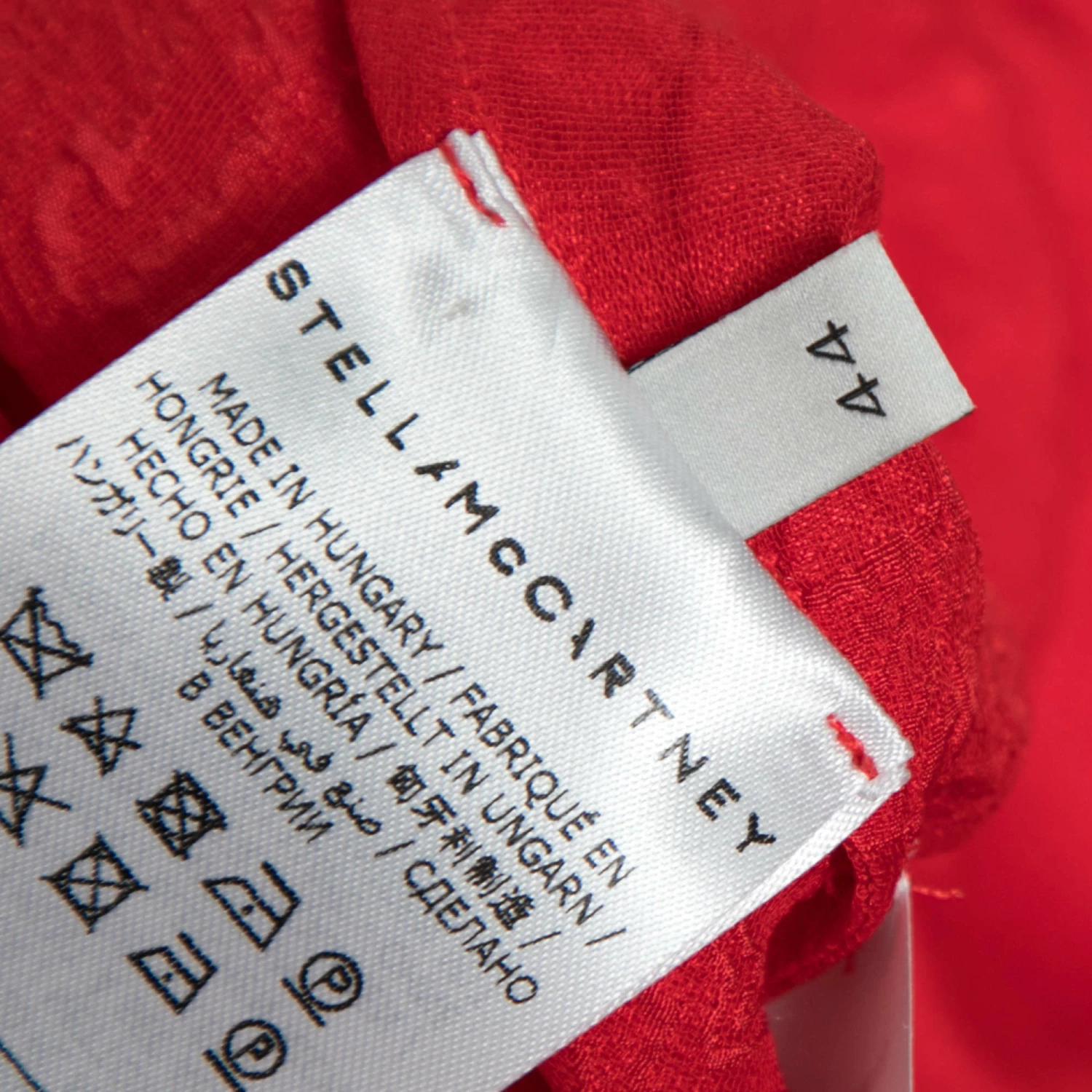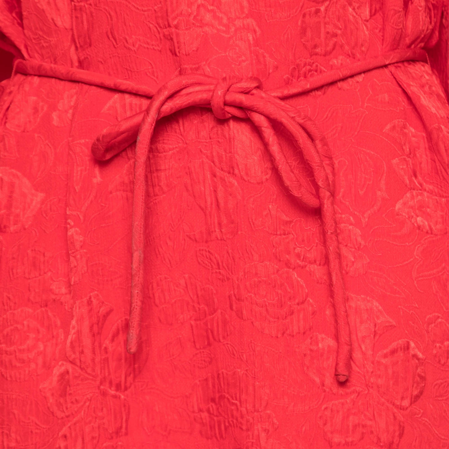 This bright and bold red Stella McCartney dress is captivating. Crafted in brocade silk and cut to flatter the body with a belted design, the fit is fluid and elegant. Wear the long-sleeved dress with wedges and minimal earrings.