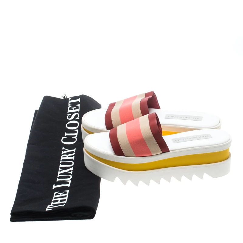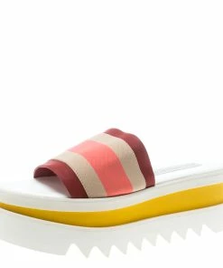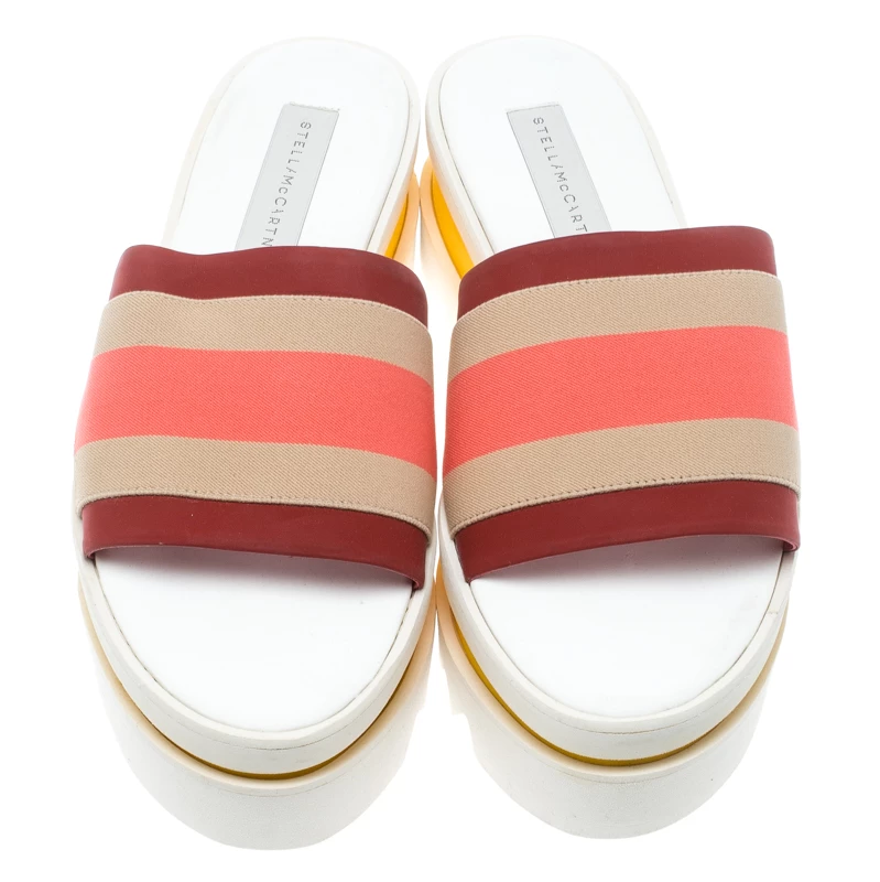 Wearing Stella McCartney just gives one a soothing feeling because of the fact that her designs are all high-fashion and eco-friendly. From her very famous label, comes this pair of slides that are made from faux suede as well as twill tape, and styled with catchy colours and high platforms set in a modern way.