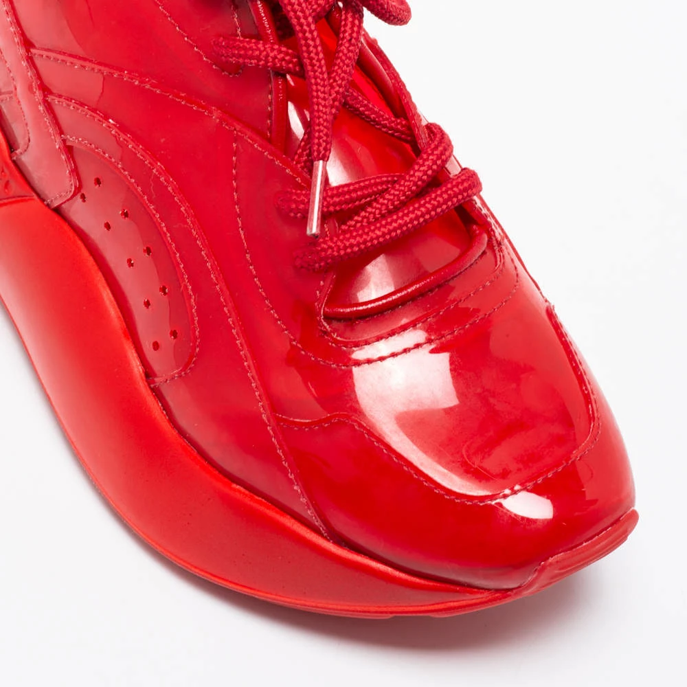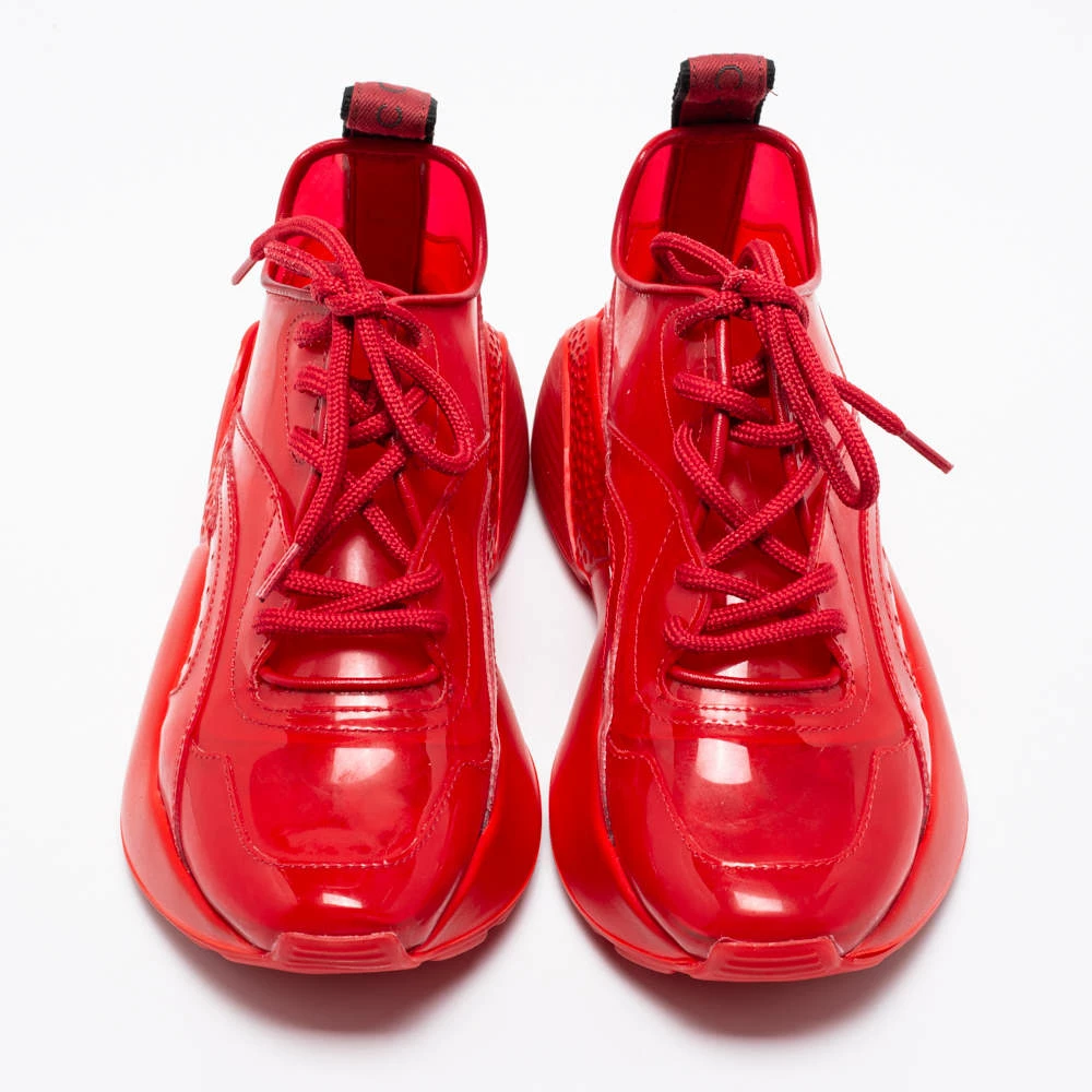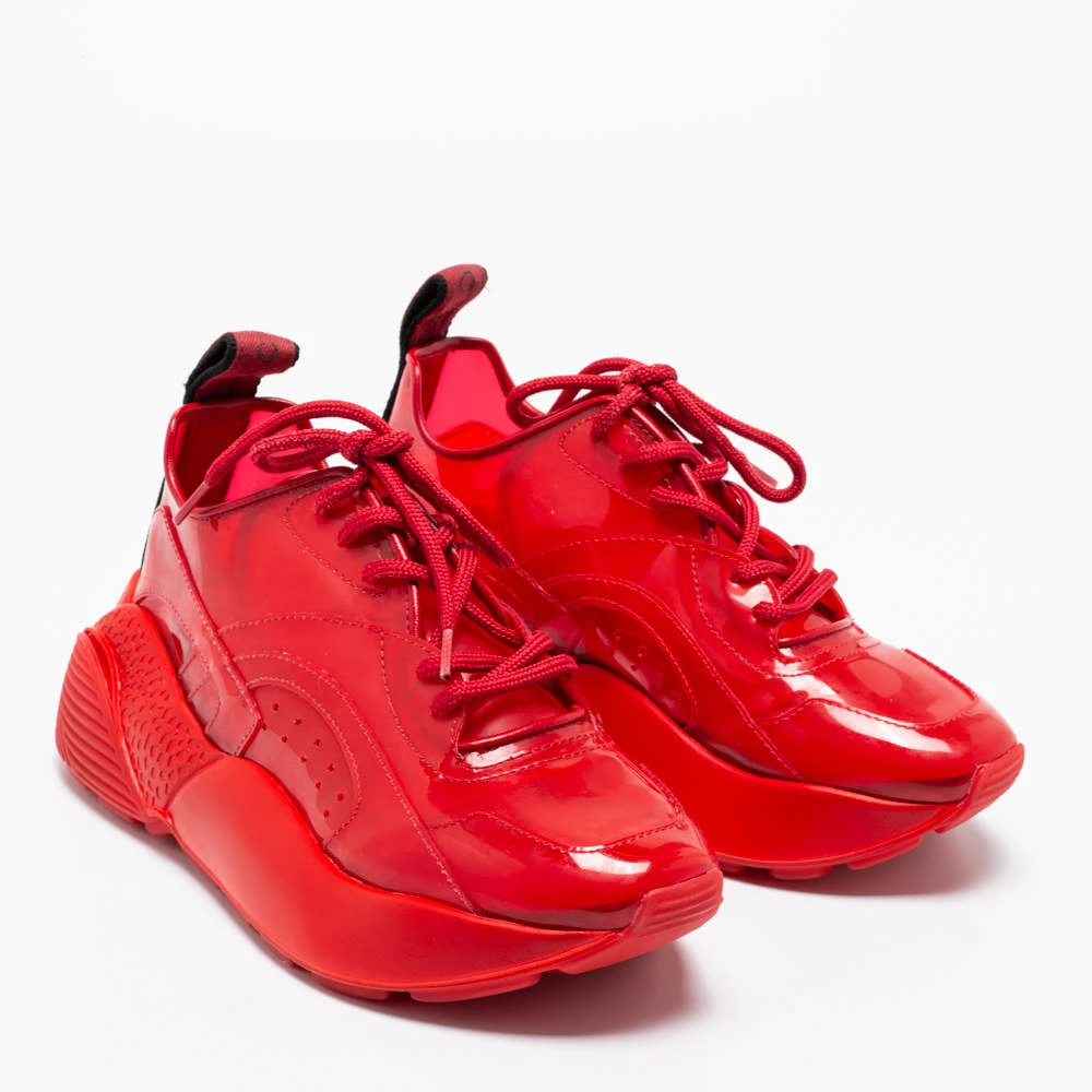 Stay in comfort with these sneakers from Stella McCartney. Crafted with a combination of PVC, these red kicks have textured soles along with lace-up closure on the uppers. Comfortable fabric lining and tough rubber soles complete these Eclypse sneakers.