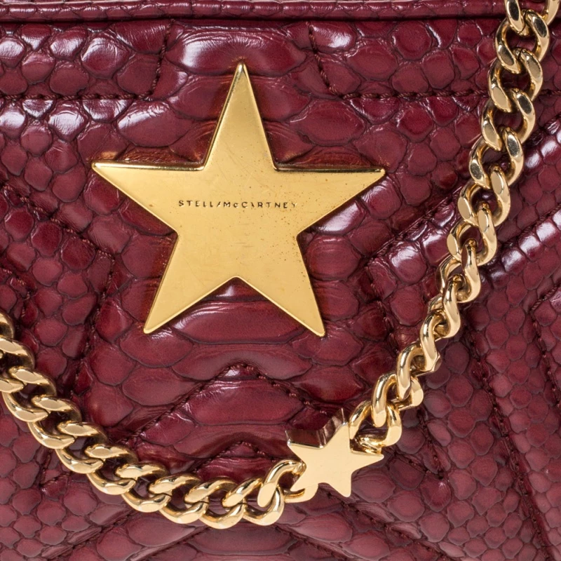 Carefully designed to evoke a grand and stately look, this python-embossed faux leather bag is sure to make heads turn. Its exterior is accented quilted patterns and a gold-tone star motif at the front face. The faux suede lining ensures an immaculate finish. It is complete with a gold-tone chain-link shoulder strap. Fall in love with this absolutely amazing bag from Stella McCartney.