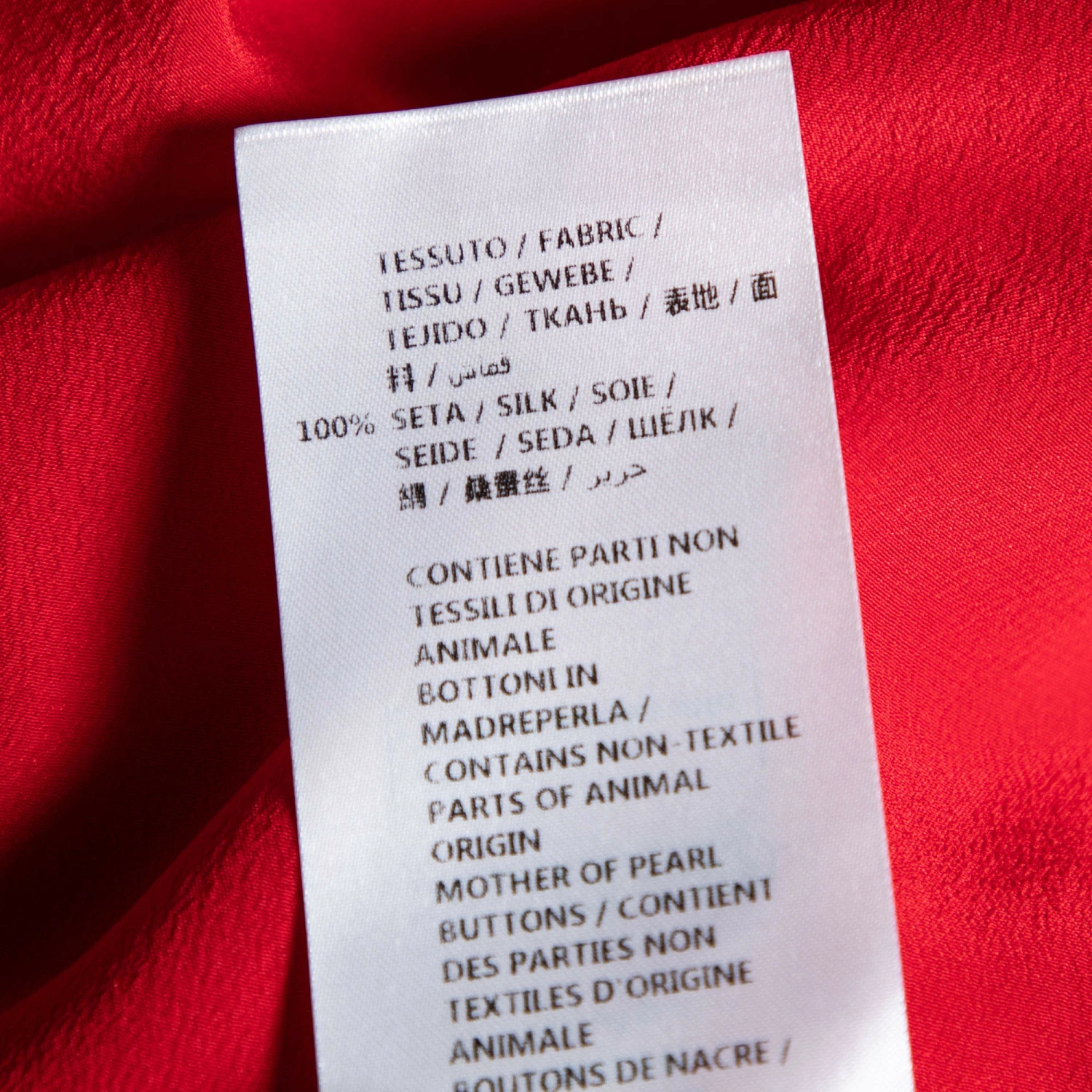 Made from silk, the contrasting trims against the red body make this Stella McCartney shirt more desirable. It is characterized by front button fastenings, short sleeves, and external pockets.